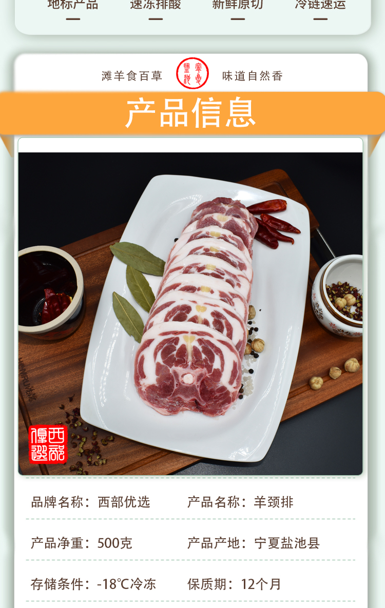 商品名称:【京东配送】西部优选盐池滩羊羊颈排500g*2袋