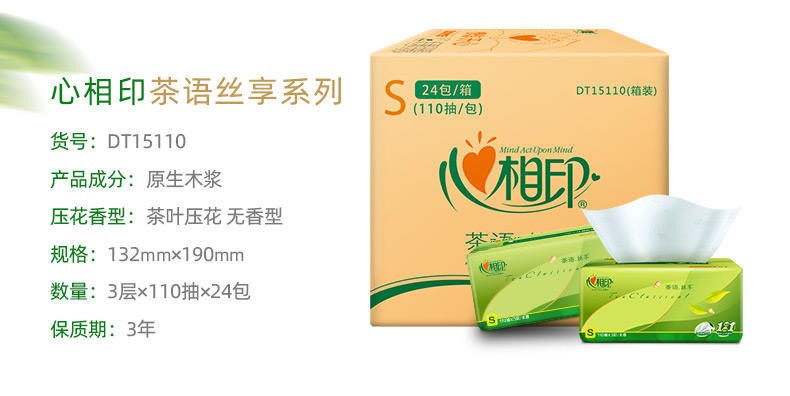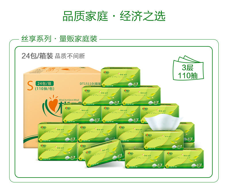 商品名称:心相印茶语丝享系列抽纸整箱3层110抽*24包