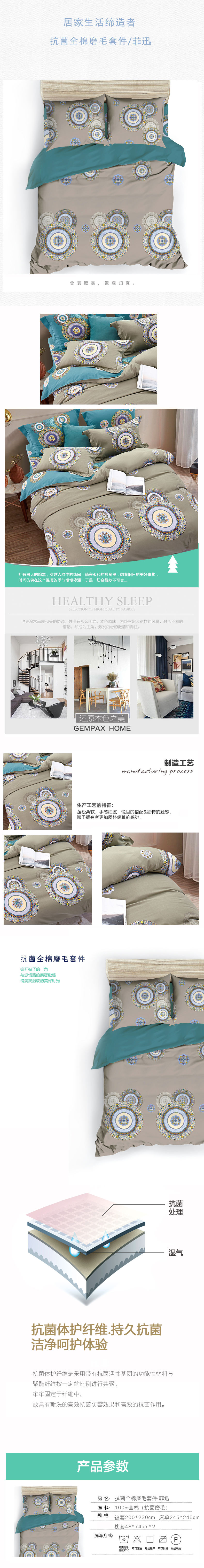 商品名称:KINTHERI/金丝莉菲迅抗菌全棉磨毛床品四件套200*230cm
