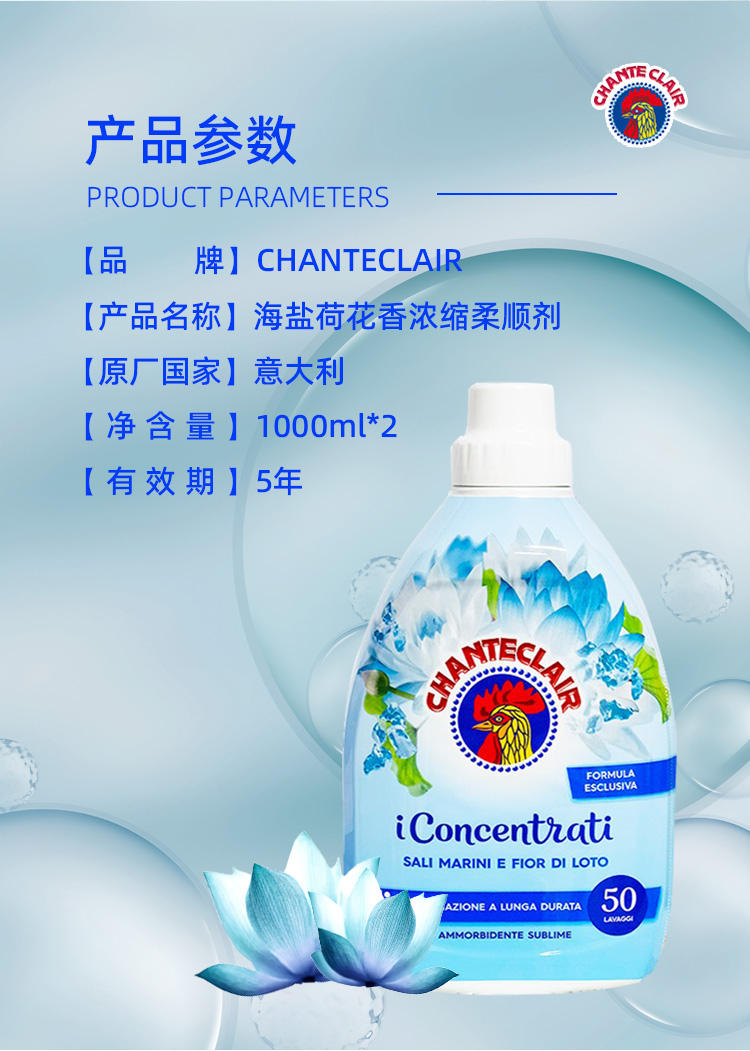 商品名称:CHANTECLAIR/大公鸡管家浓缩柔顺剂-海盐荷花香1000ml*2瓶