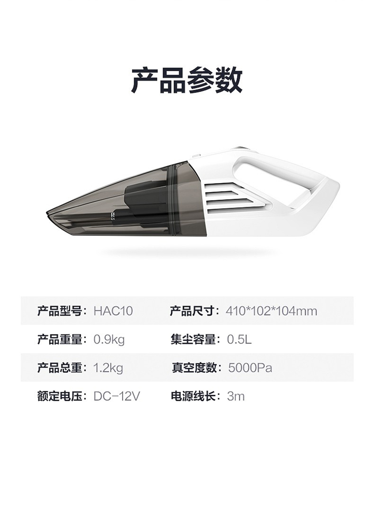 商品名称:【京东/顺丰/德邦配送】Midea/美的车载吸尘器HAC10