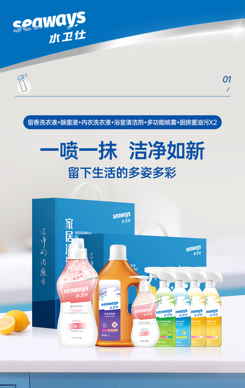 seaways/水卫仕家居清洁套装3.2kg+1L