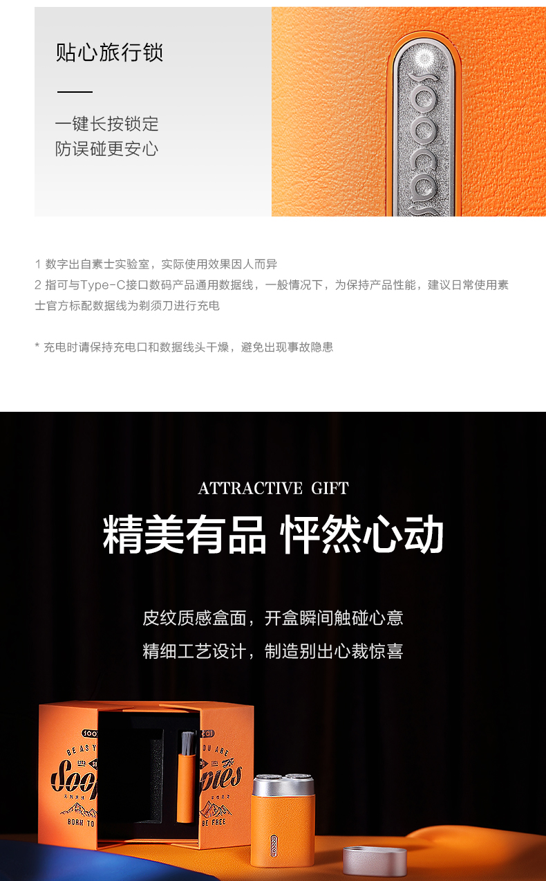 商品名称:soocas/素士便携素皮电动剃须刀SP1