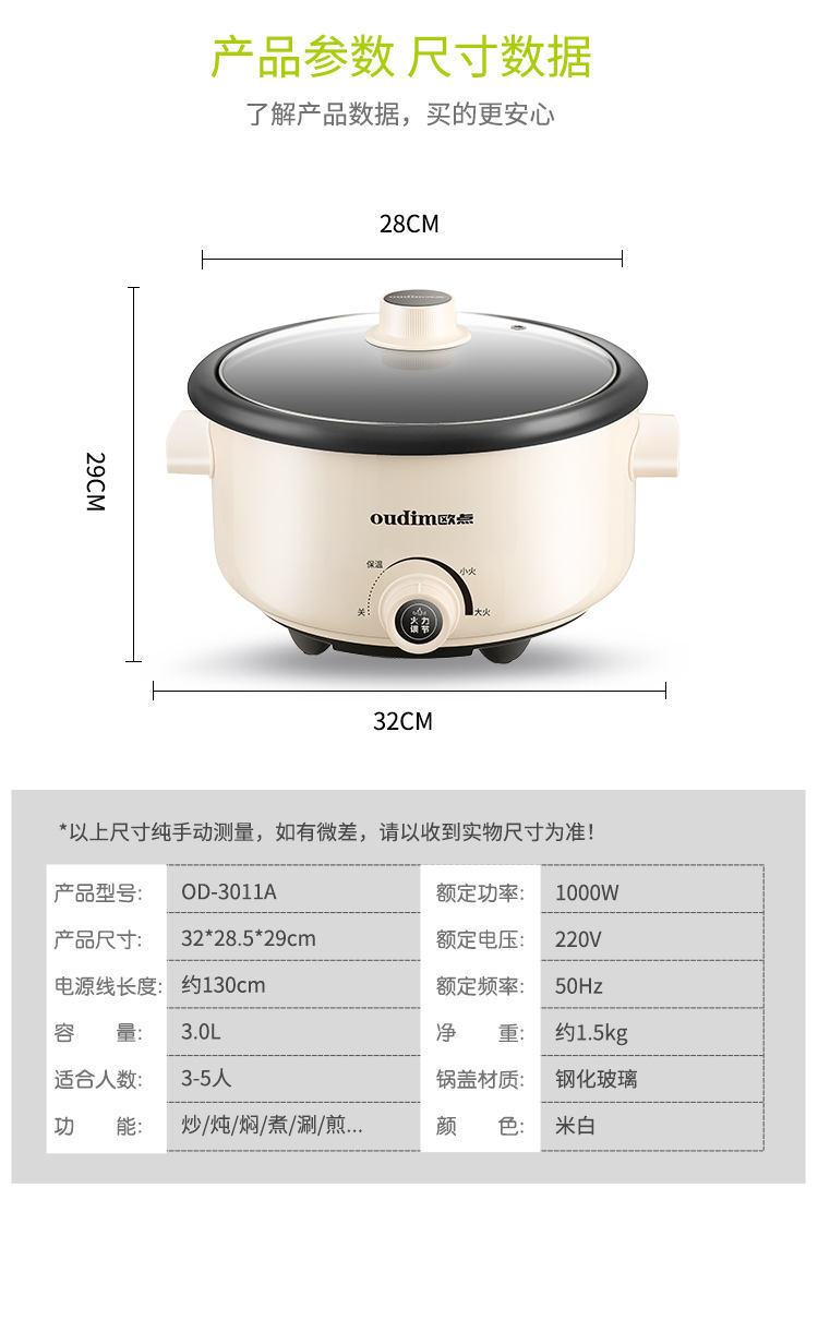 商品名称:oudim/欧点3升电火锅OD-3011A