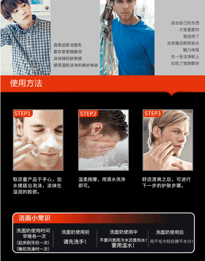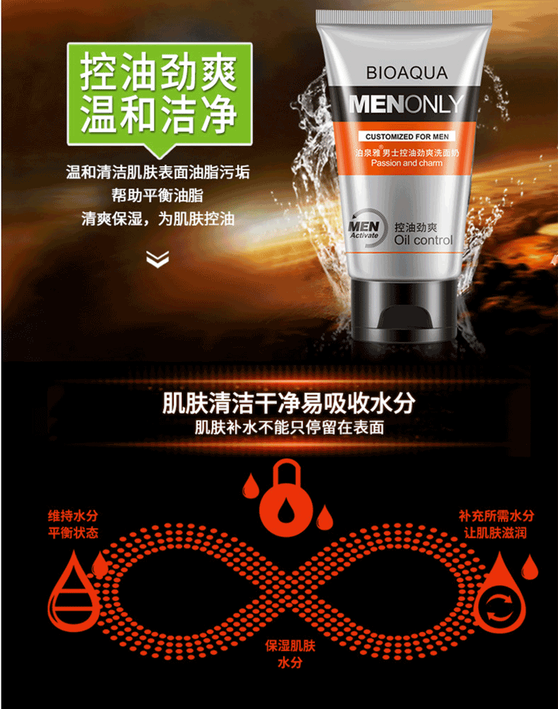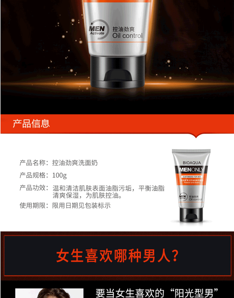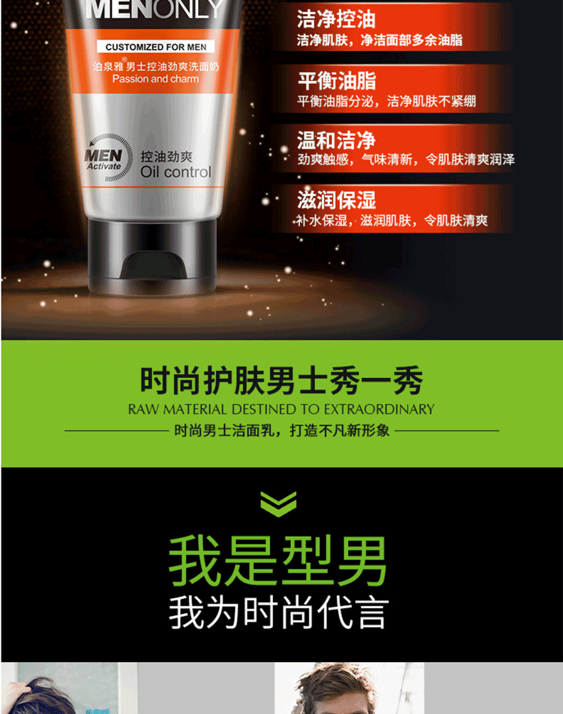 商品名称:泊泉雅男士控油劲爽洗面奶 洁净清爽保湿 100g