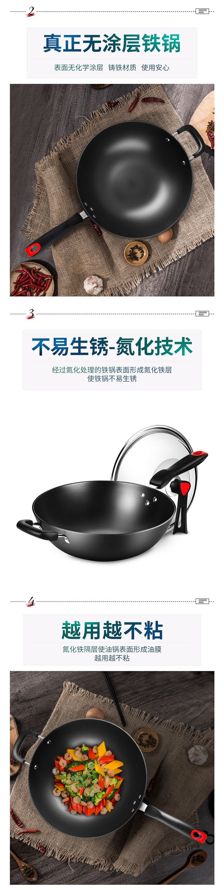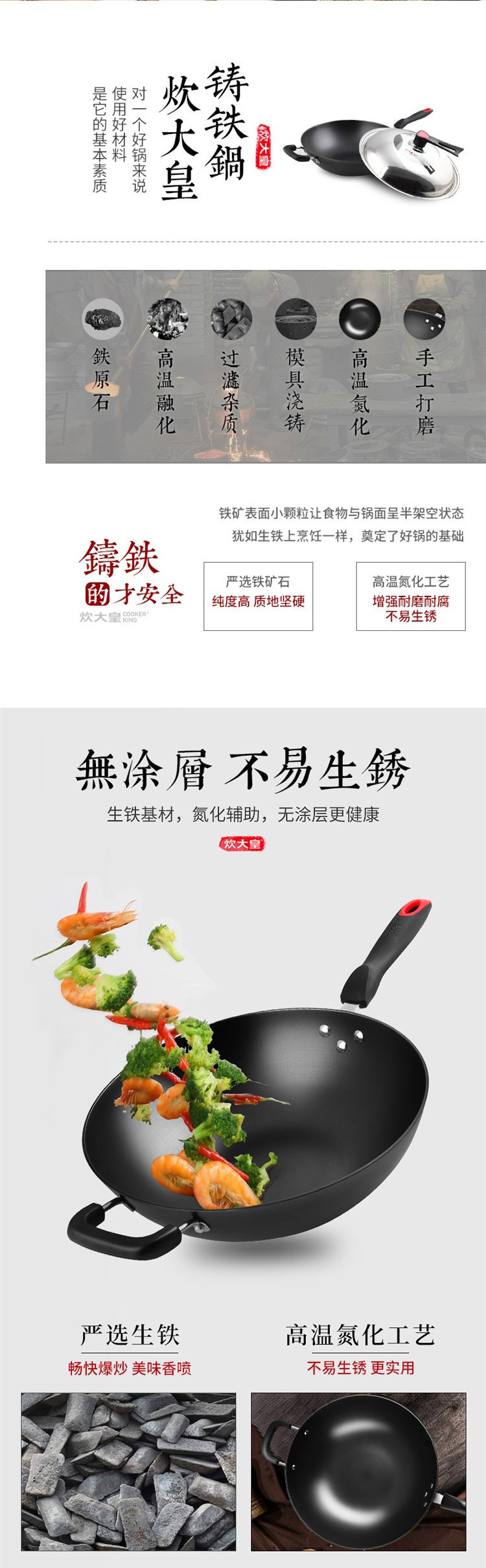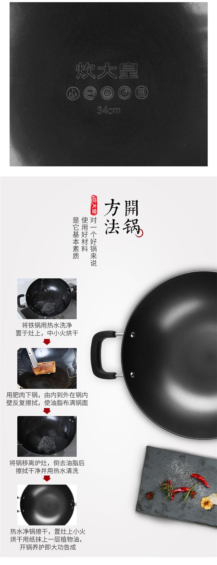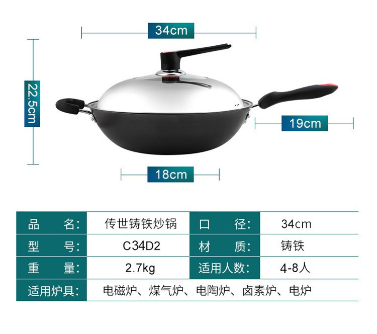 商品名称:COOKERKING/炊大皇34cm传世铸铁炒锅C34D2