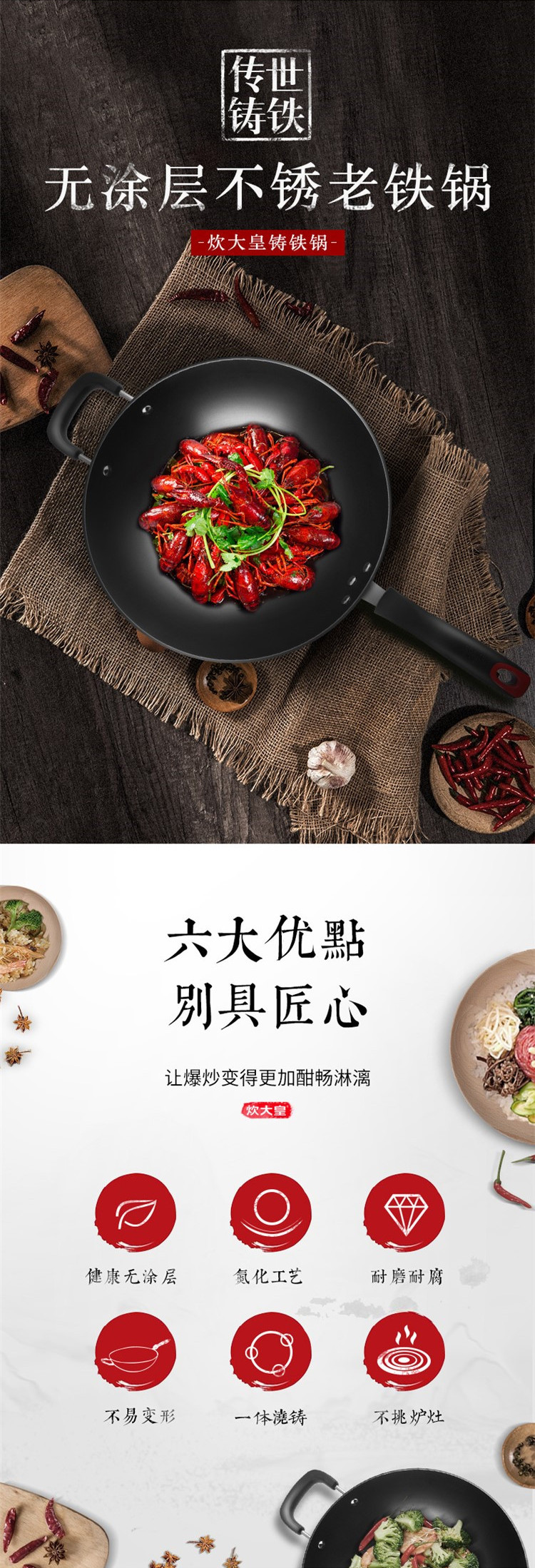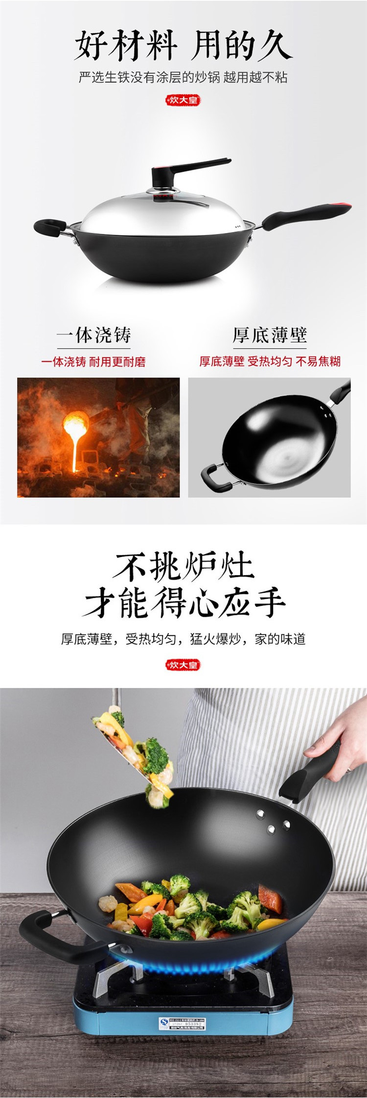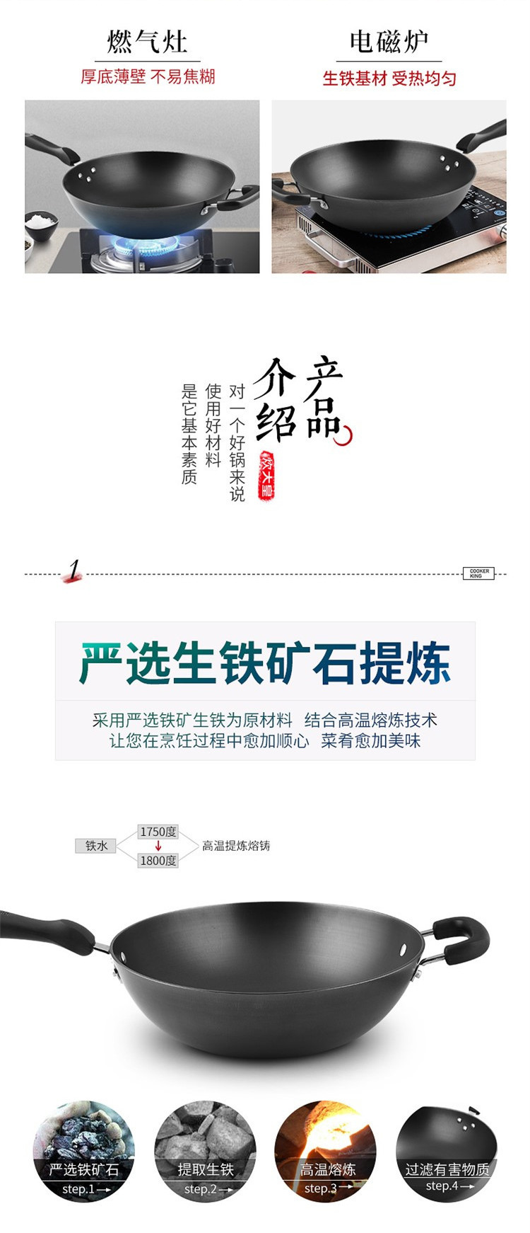 商品名称:COOKERKING/炊大皇34cm传世铸铁炒锅C34D2