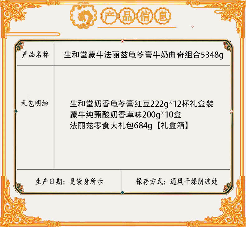 商品名称:【京东配送】生和堂蒙牛法丽兹龟苓膏牛奶曲奇组合5348g