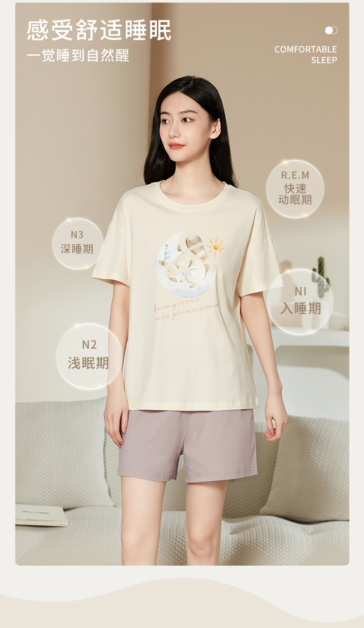 商品名称:【100%棉】香草冰淇淋套装纯棉睡衣女士家居服柔软舒适可外穿 878475