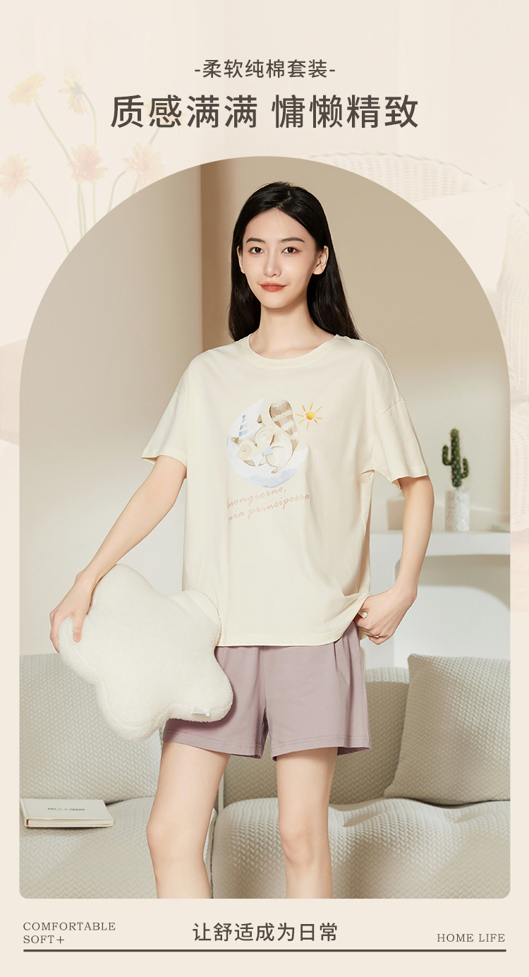 【100%棉】香草冰淇淋套装纯棉睡衣女士家居服柔软舒适可外穿 878475
