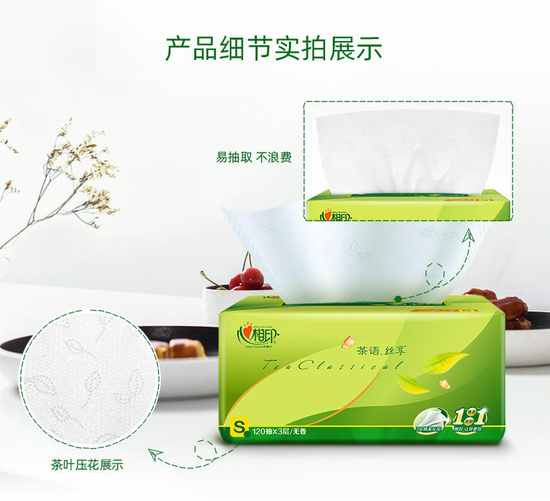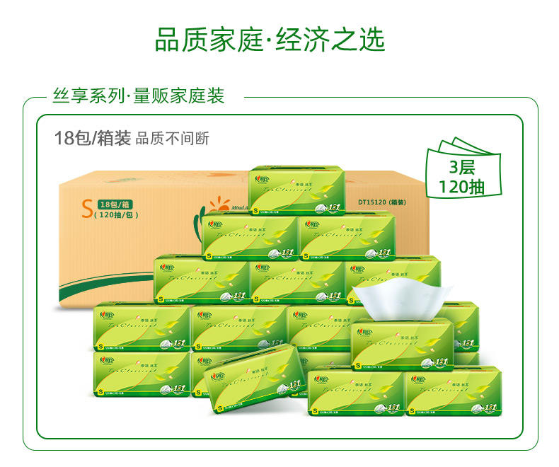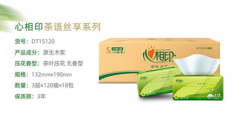 商品名称:心相印茶语丝享系列抽纸整箱3层120抽*18包