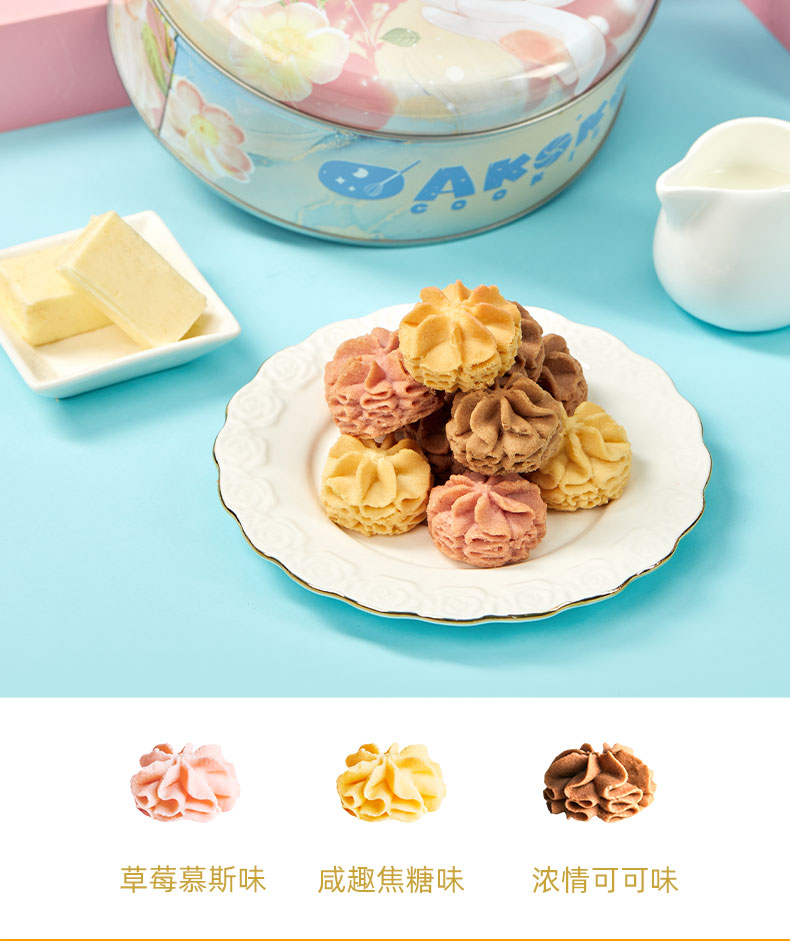 商品名称:AKOKO/小花曲奇饼干经典三拼礼盒560g