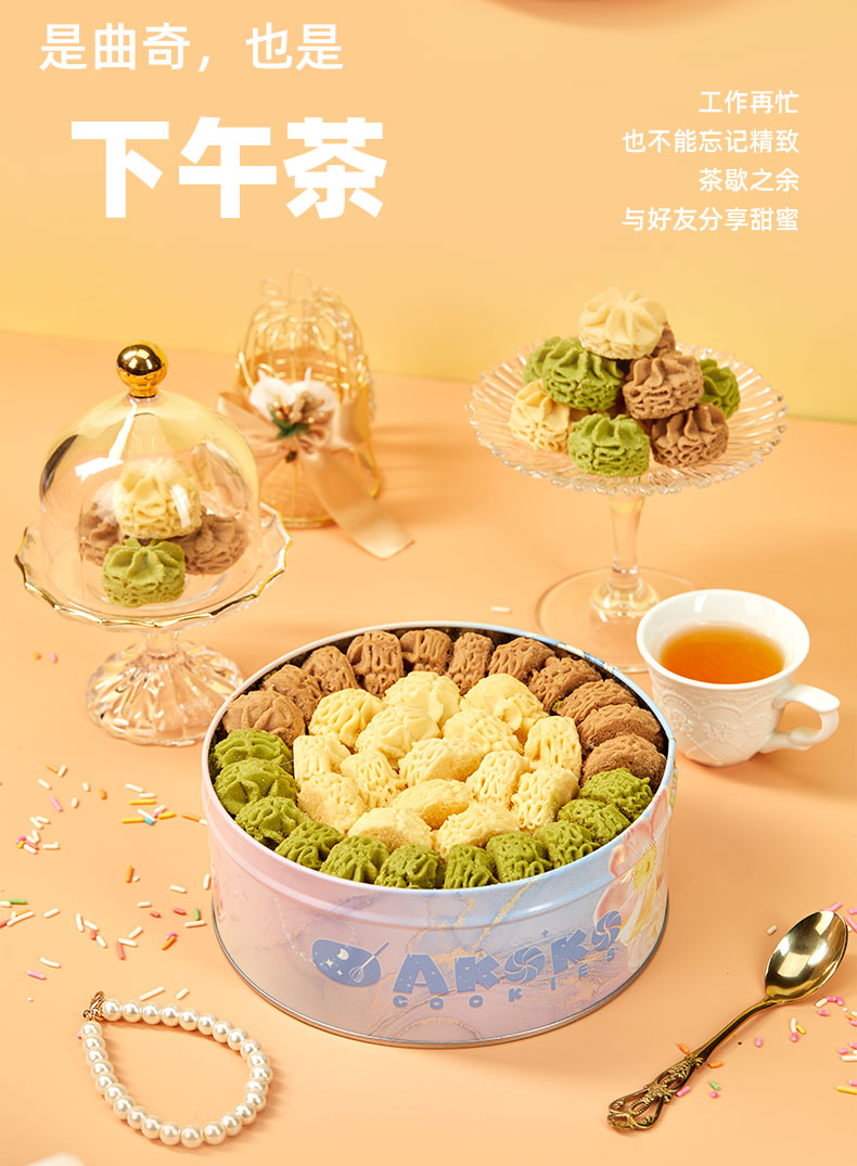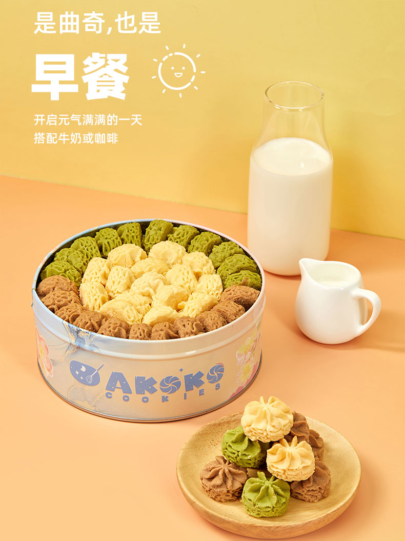 AKOKO/小花曲奇饼干经典三拼礼盒560g