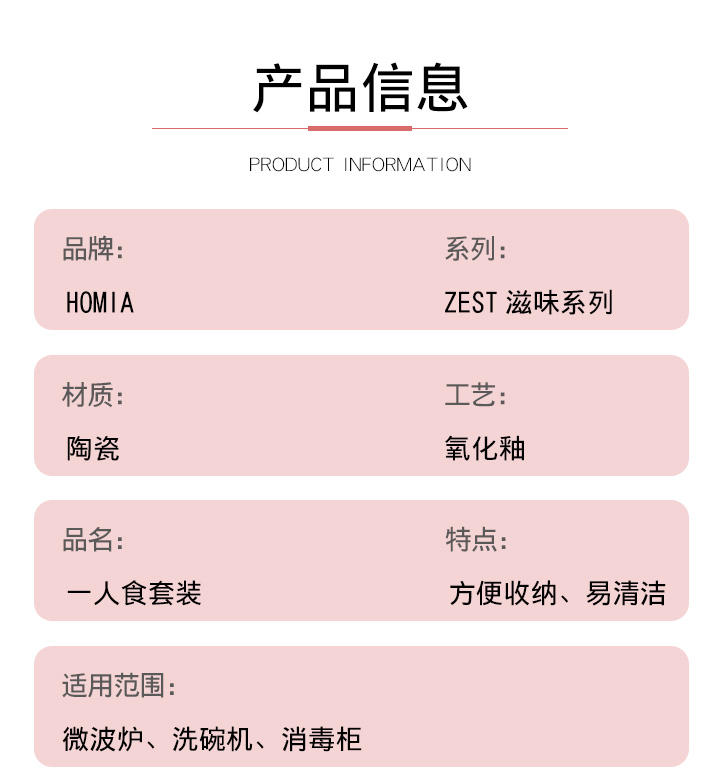 商品名称:HOMIA滋味系列一人食陶瓷餐具六件套