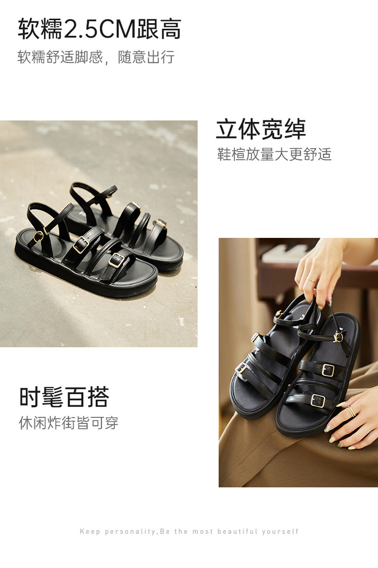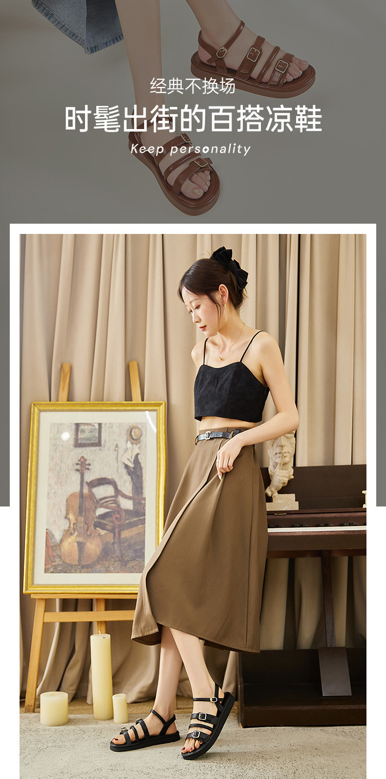 商品名称:凉鞋女士凉鞋女百搭罗马凉鞋女复古平底凉鞋女镂空女鞋夏季 023055