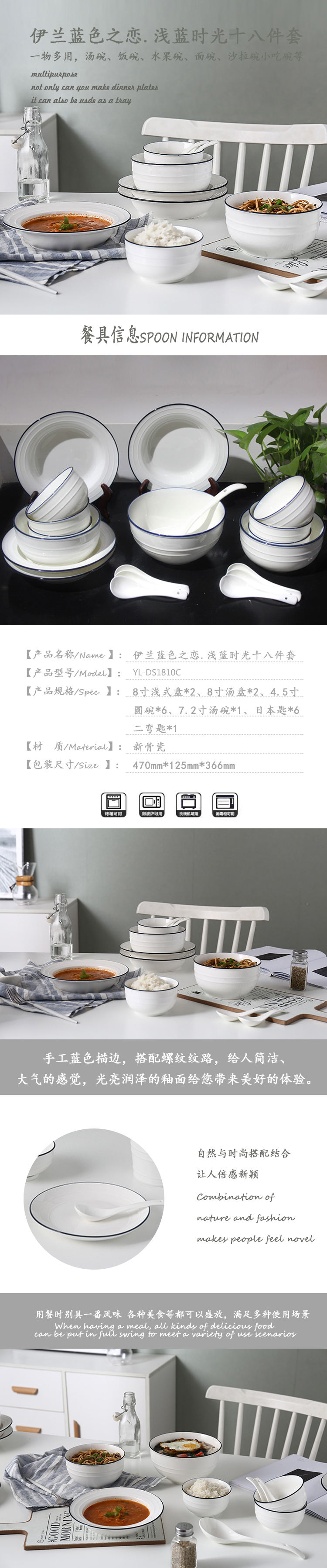商品名称:YILAN/伊兰蓝色之恋浅蓝时光餐具18件套YL-DS1810C