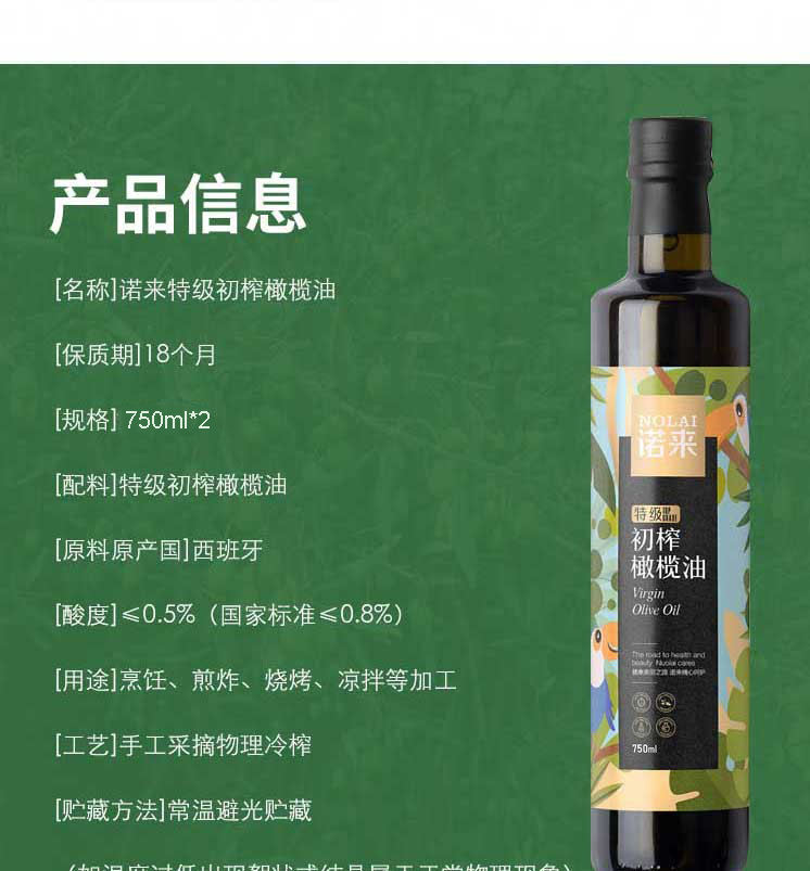 商品名称:诺来特级初榨橄榄油礼盒750ml*2瓶