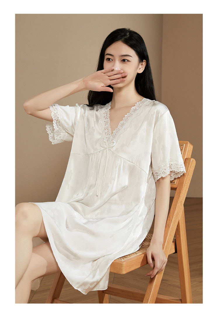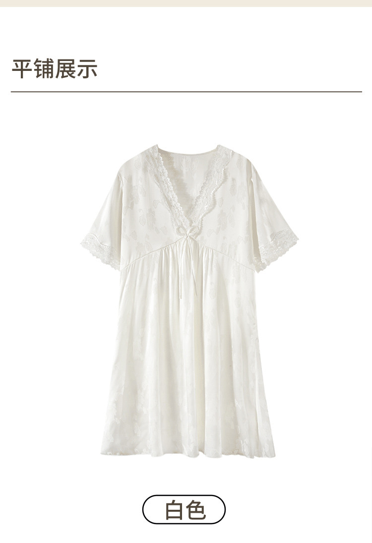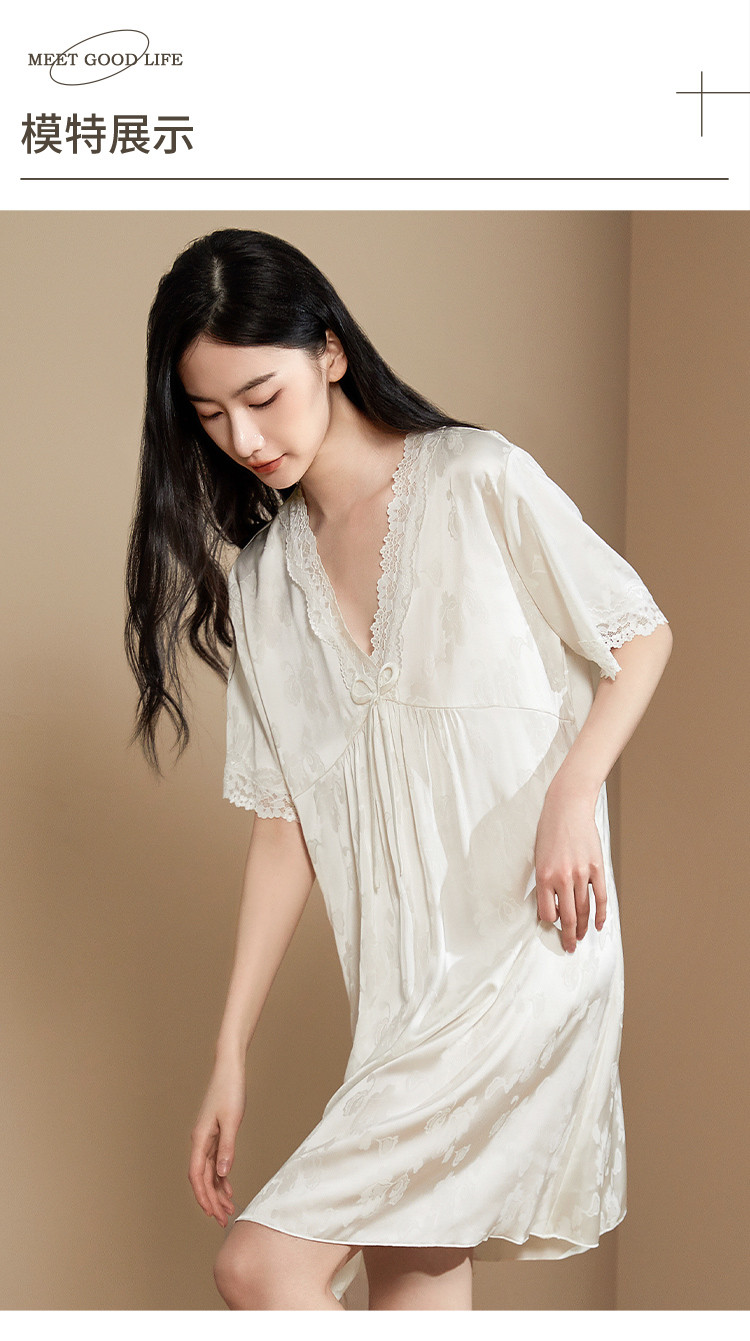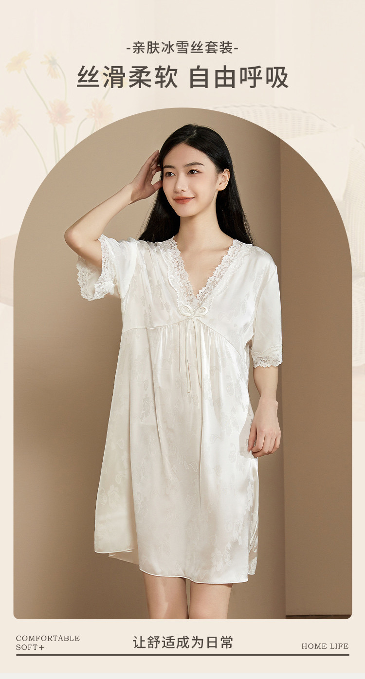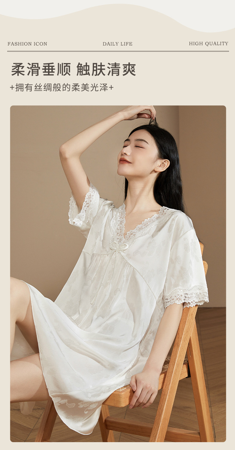 商品名称:【小奶糕冰雪丝】亲肤蕾丝拼接V领舒适睡衣裙子女套头睡裙女 912075