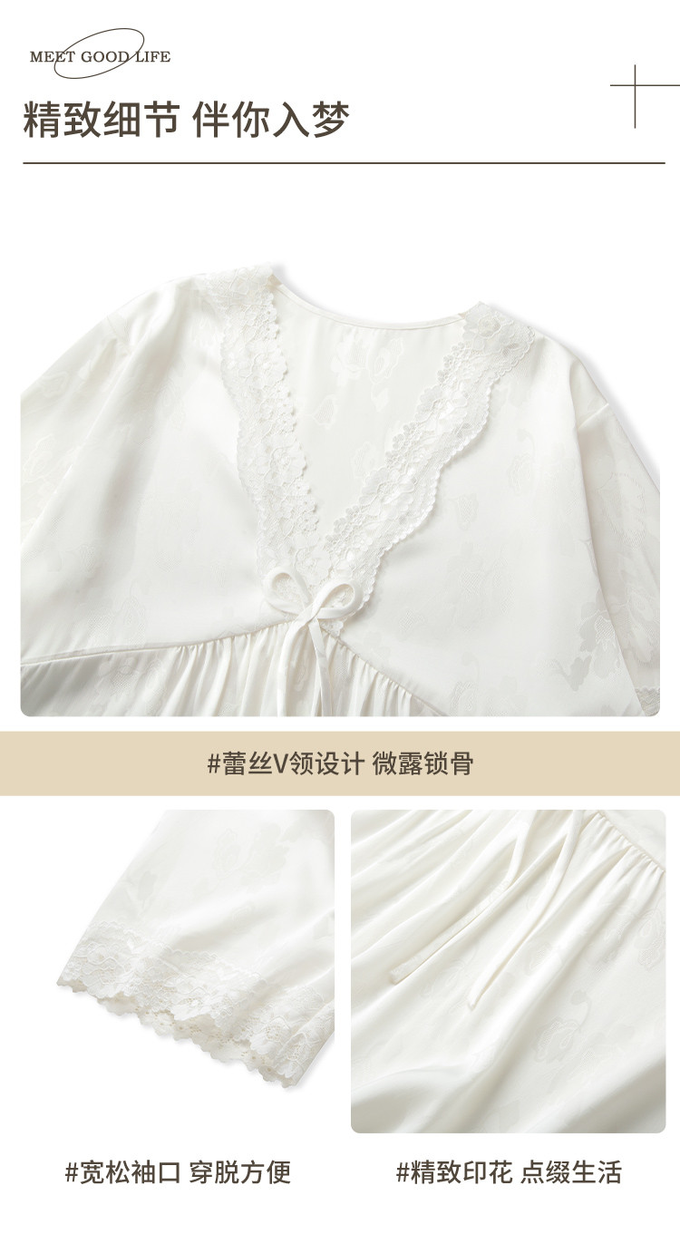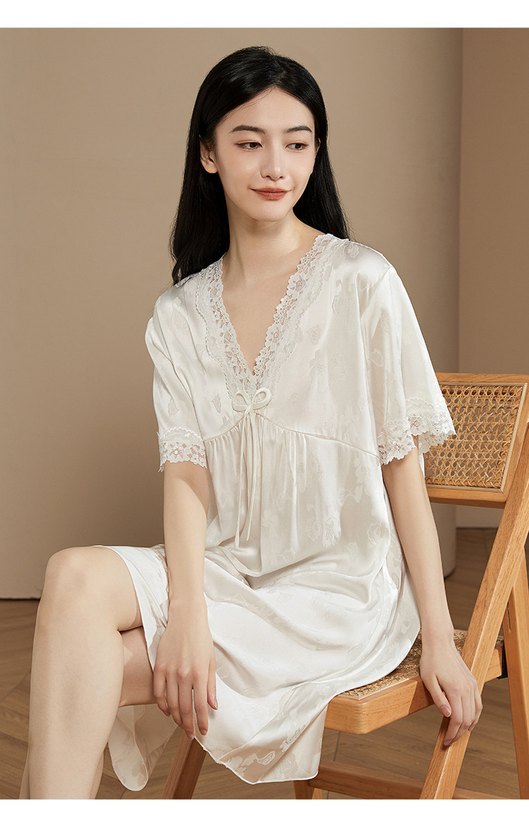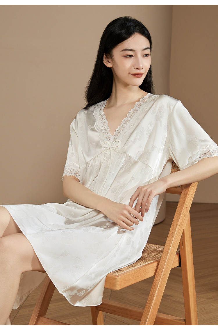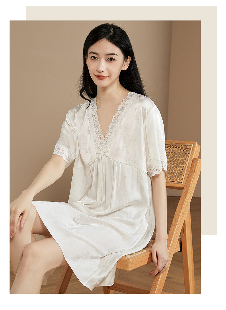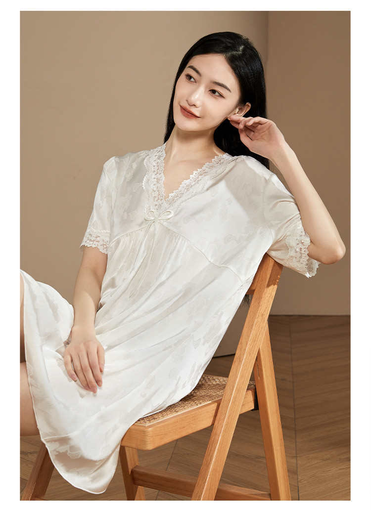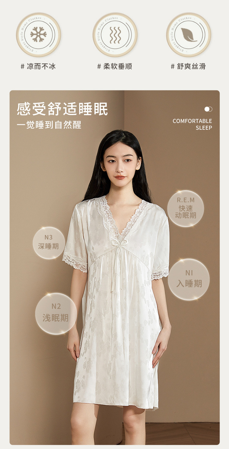 商品名称:【小奶糕冰雪丝】亲肤蕾丝拼接V领舒适睡衣裙子女套头睡裙女 912075