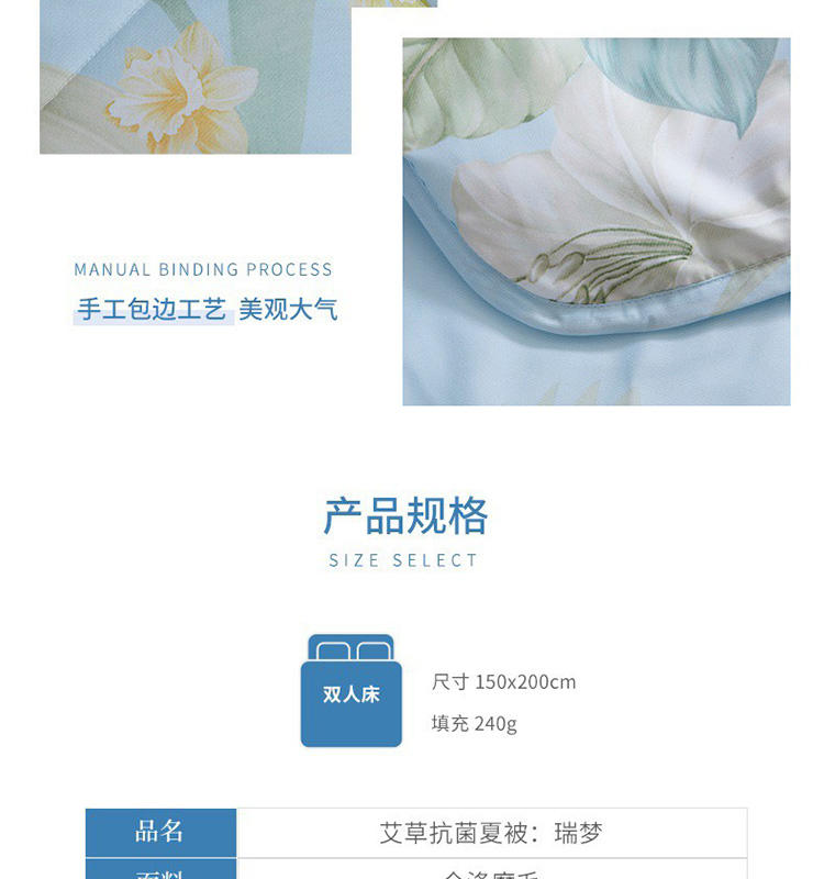 商品名称:梦洁家纺瑞梦艾草抗菌夏被150*200cm 240g