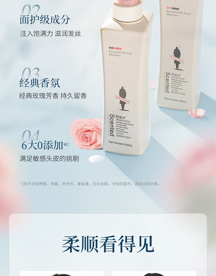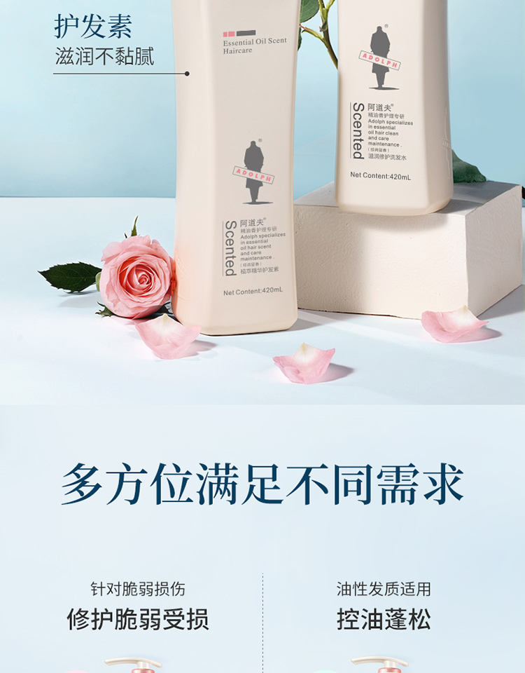 商品名称:Adolph/阿道夫植萃精华护发素420ml+ 滋润修护洗发水420ml