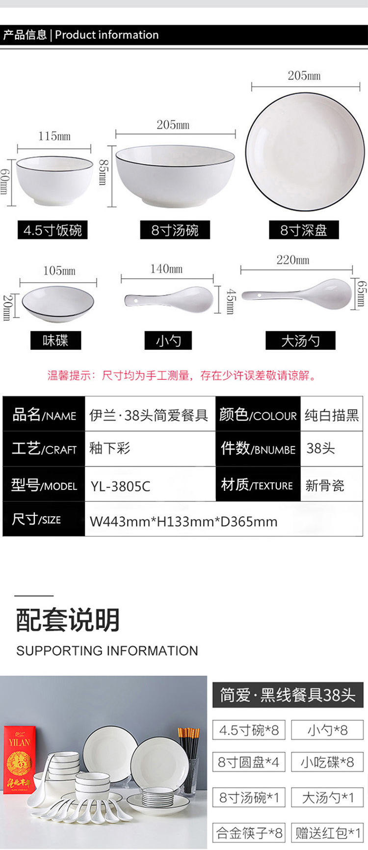 商品名称:YILAN/伊兰简爱餐具38件套YL-3805C