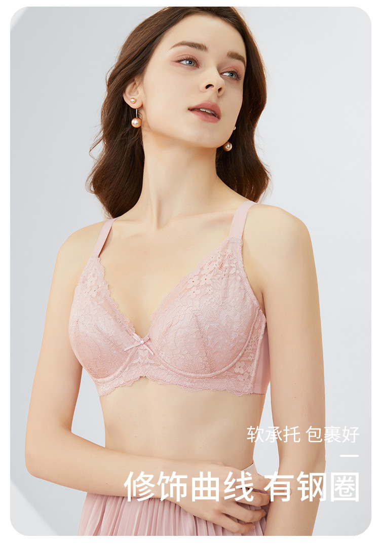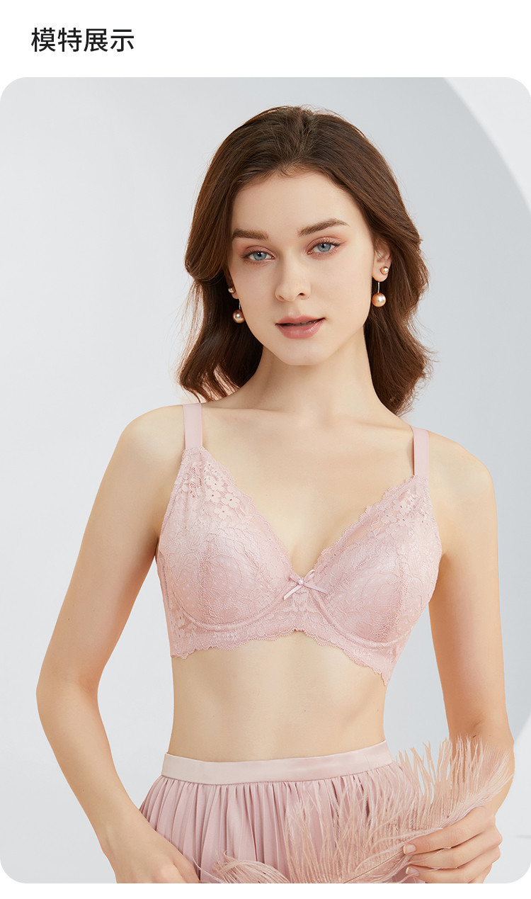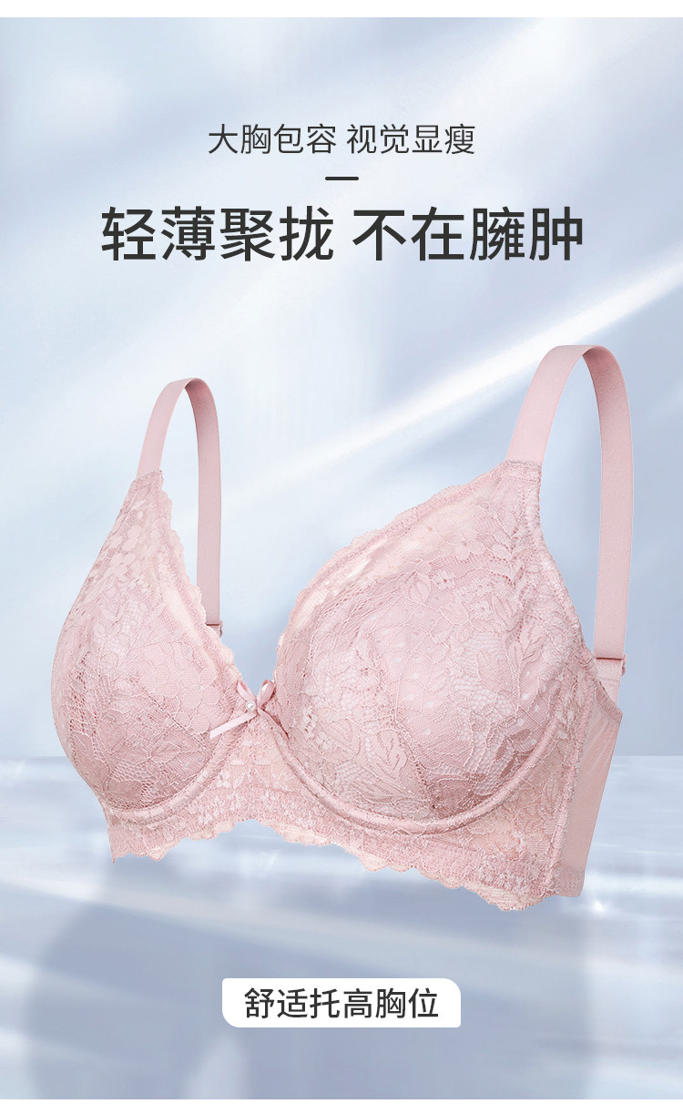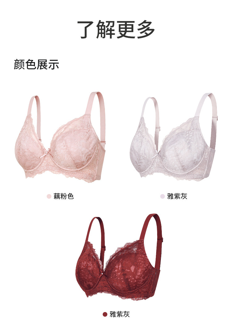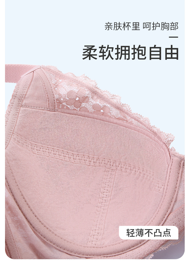 商品名称:【大胸显小】100棉里杯聚拢V型上托蕾丝收副乳女士内衣文胸罩 926539