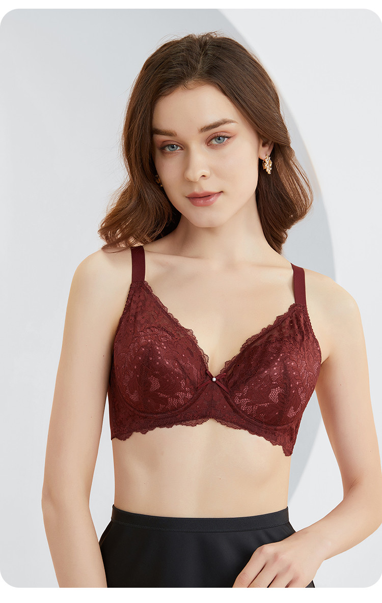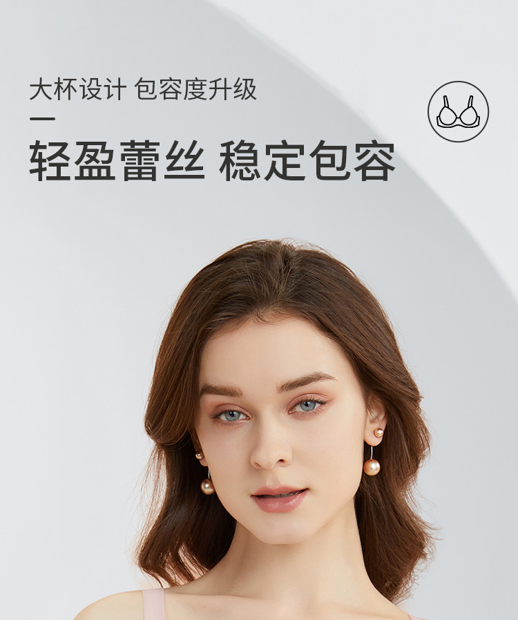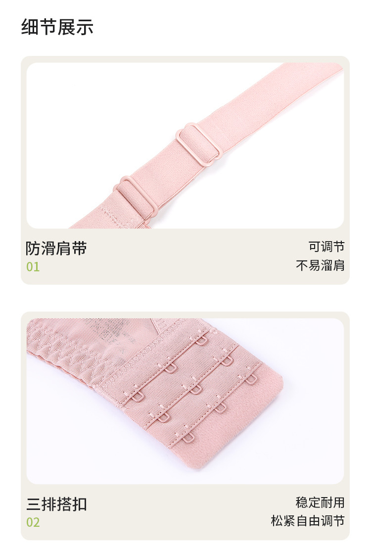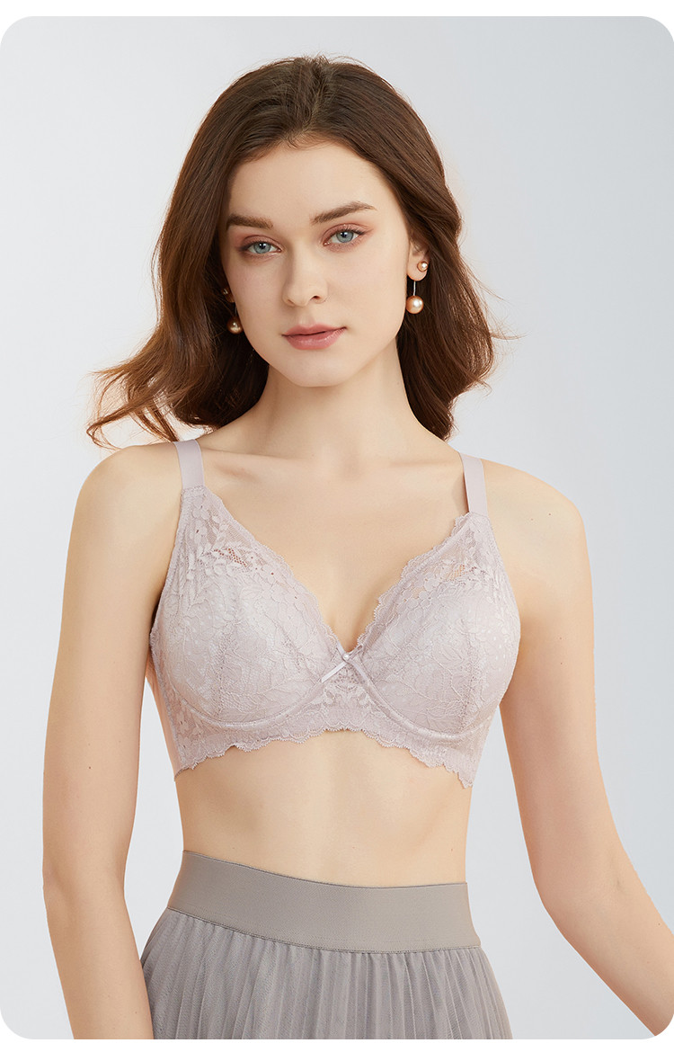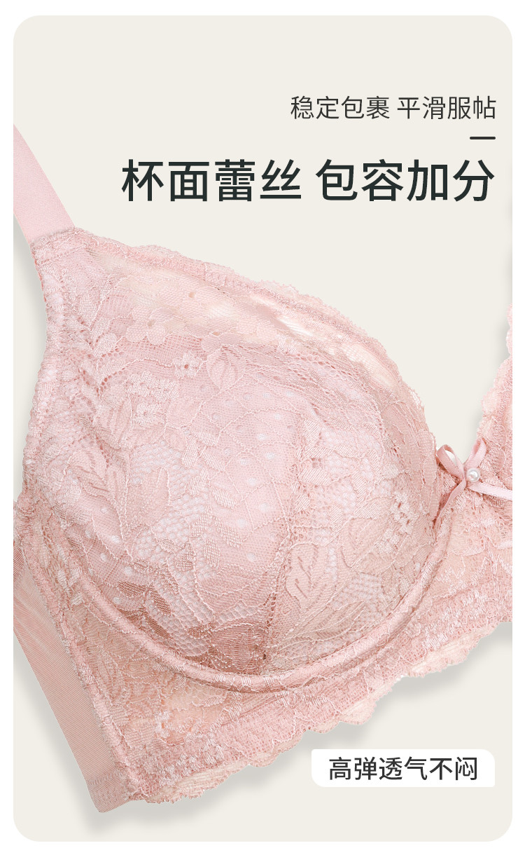 商品名称:【大胸显小】100棉里杯聚拢V型上托蕾丝收副乳女士内衣文胸罩 926539