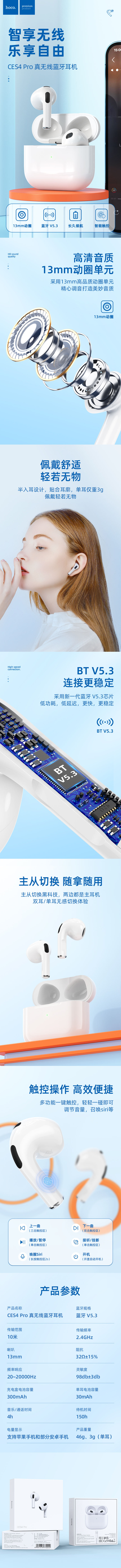 商品名称:hoco./浩酷真无线蓝牙耳机-白色CES4 Pro