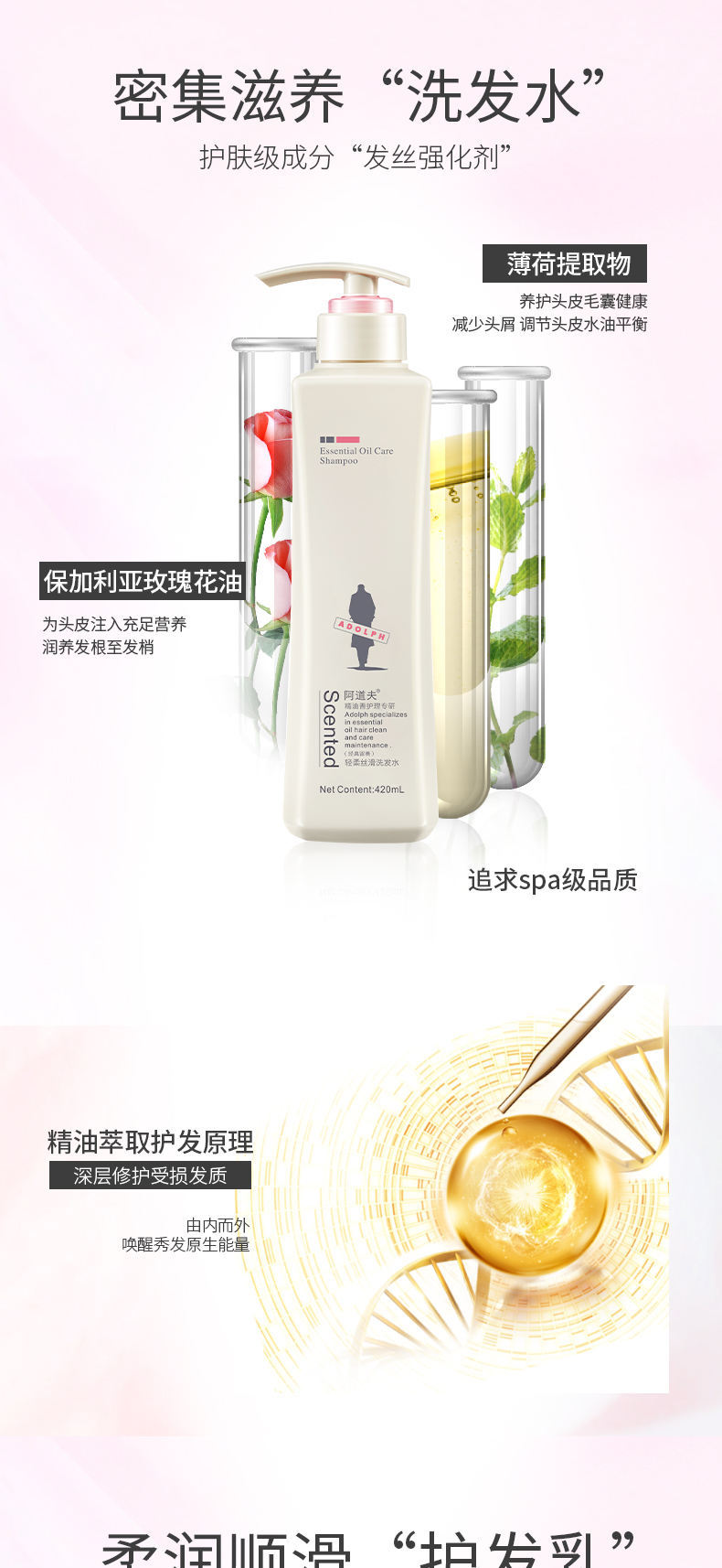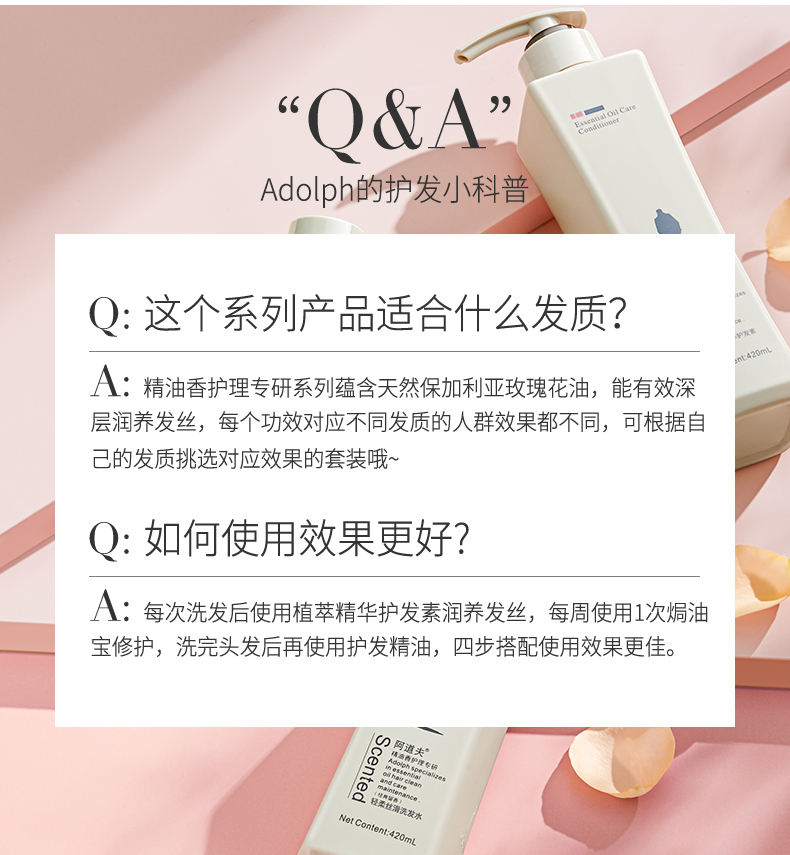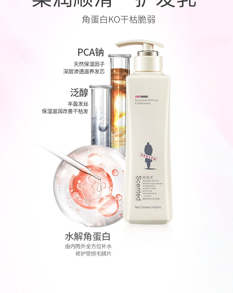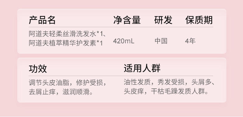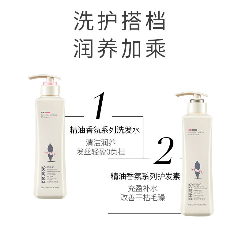 商品名称:Adolph/阿道夫植萃精华护发素420ml+ 轻柔丝滑洗发水420ml