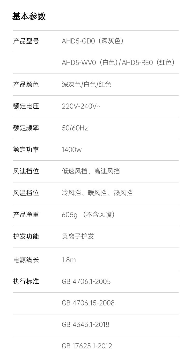 商品名称:dreame/追觅高速吹风机 AHD5-GD0 深灰色