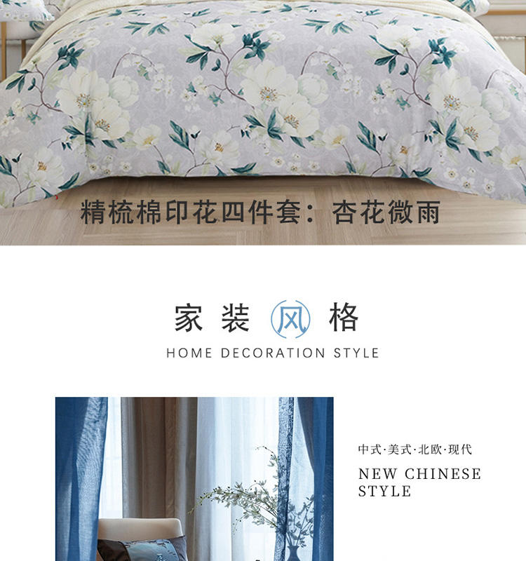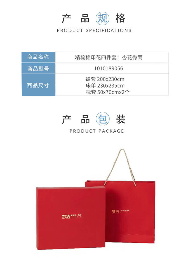 商品名称:梦洁家纺杏花微雨精梳棉印花床品四件套200*230cm