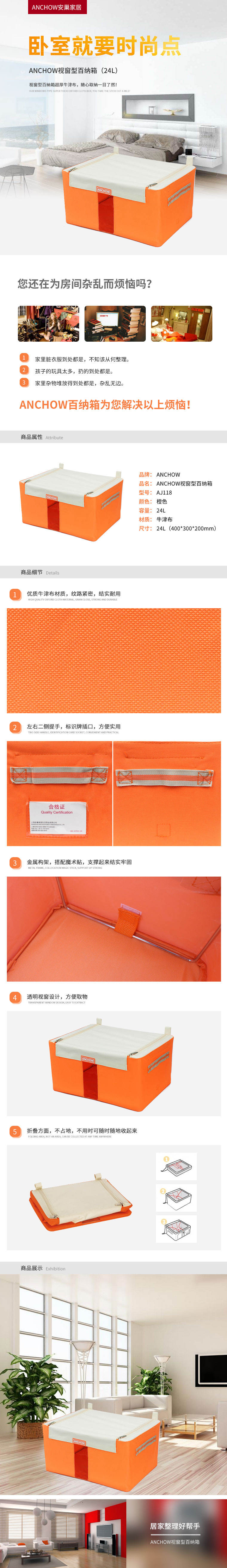 商品名称:ANCHOW/安巢24升视窗型百纳箱AJ118 橙色