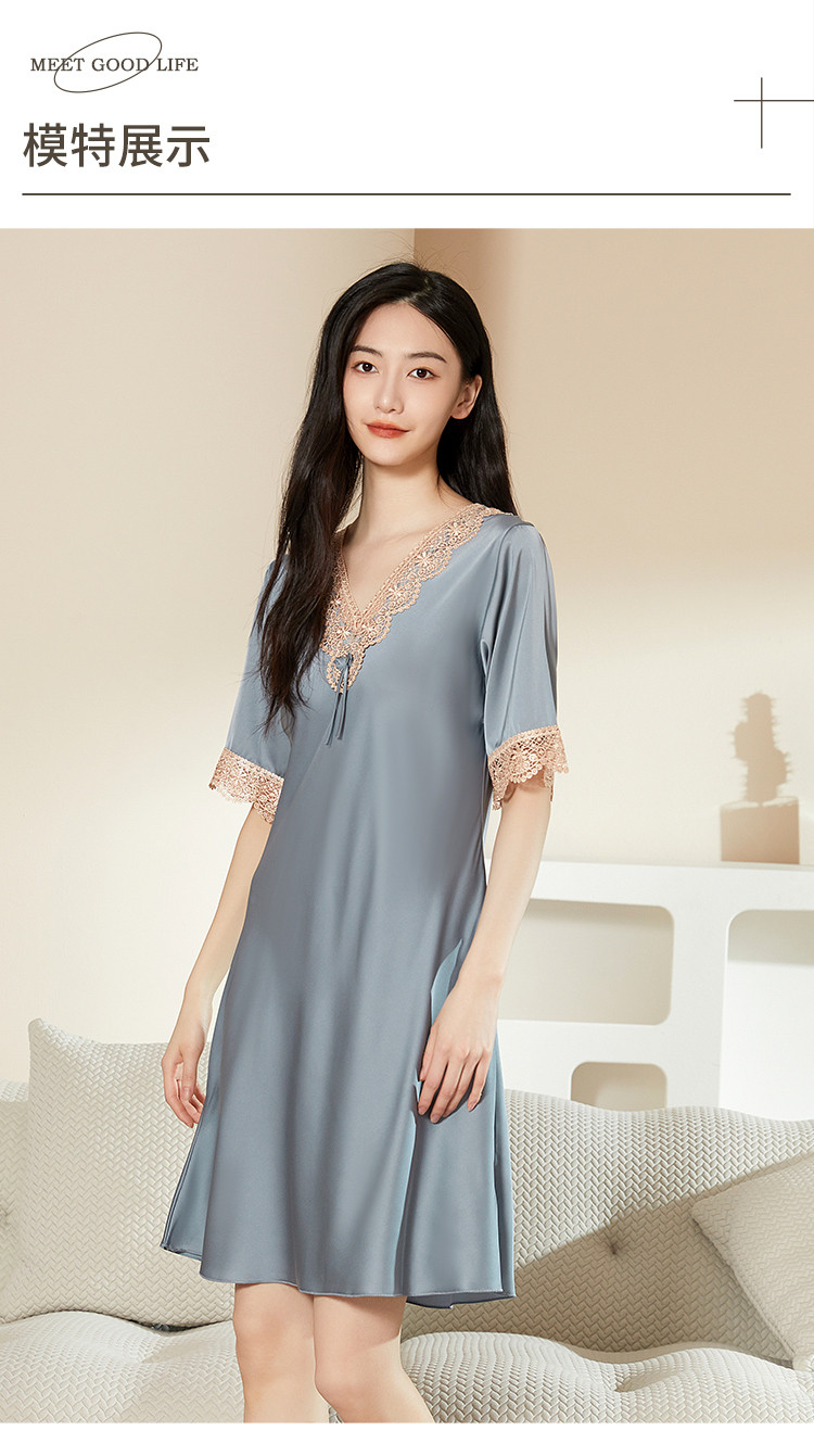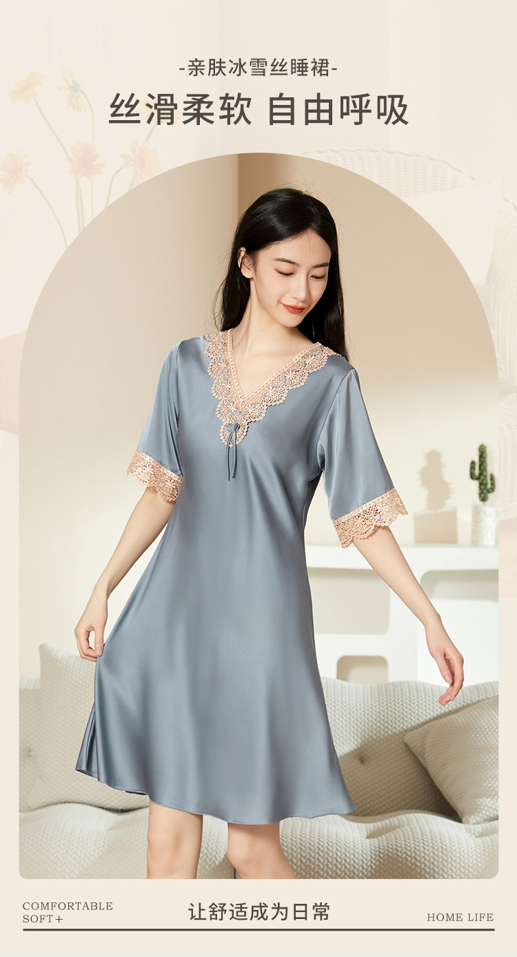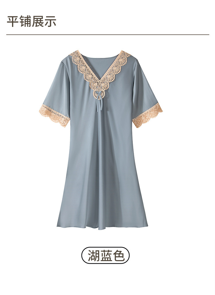 商品名称:【法式浪漫冰雪丝】V领宫廷风透气睡裙女舒适蕾丝拼接睡衣裙子女 081611