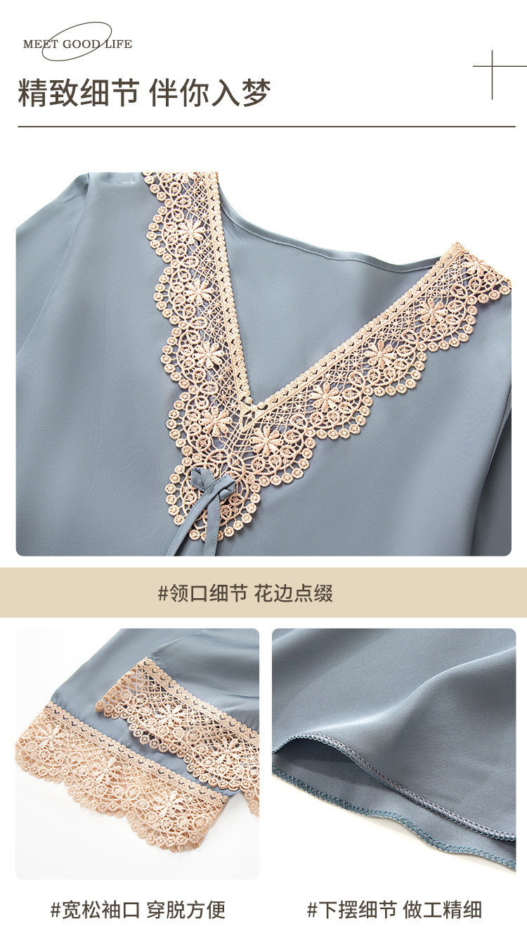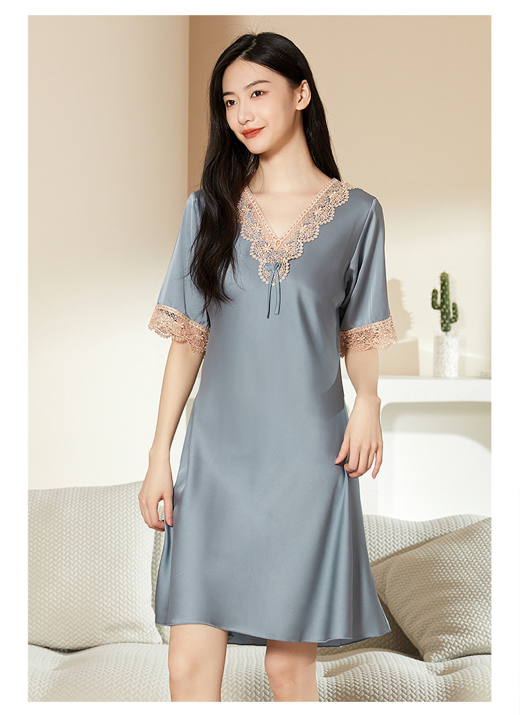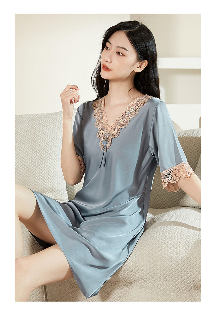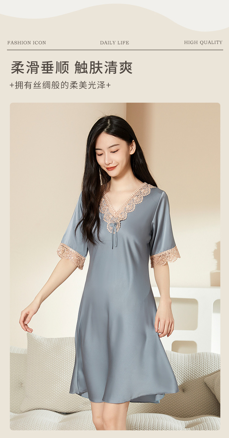 商品名称:【法式浪漫冰雪丝】V领宫廷风透气睡裙女舒适蕾丝拼接睡衣裙子女 081611