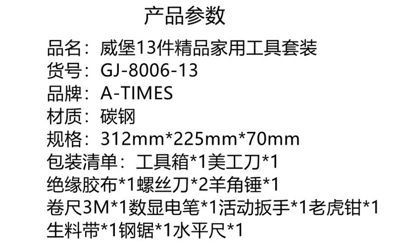 商品名称:A-TIMES威堡精品家用工具13件套GJ-8006-13
