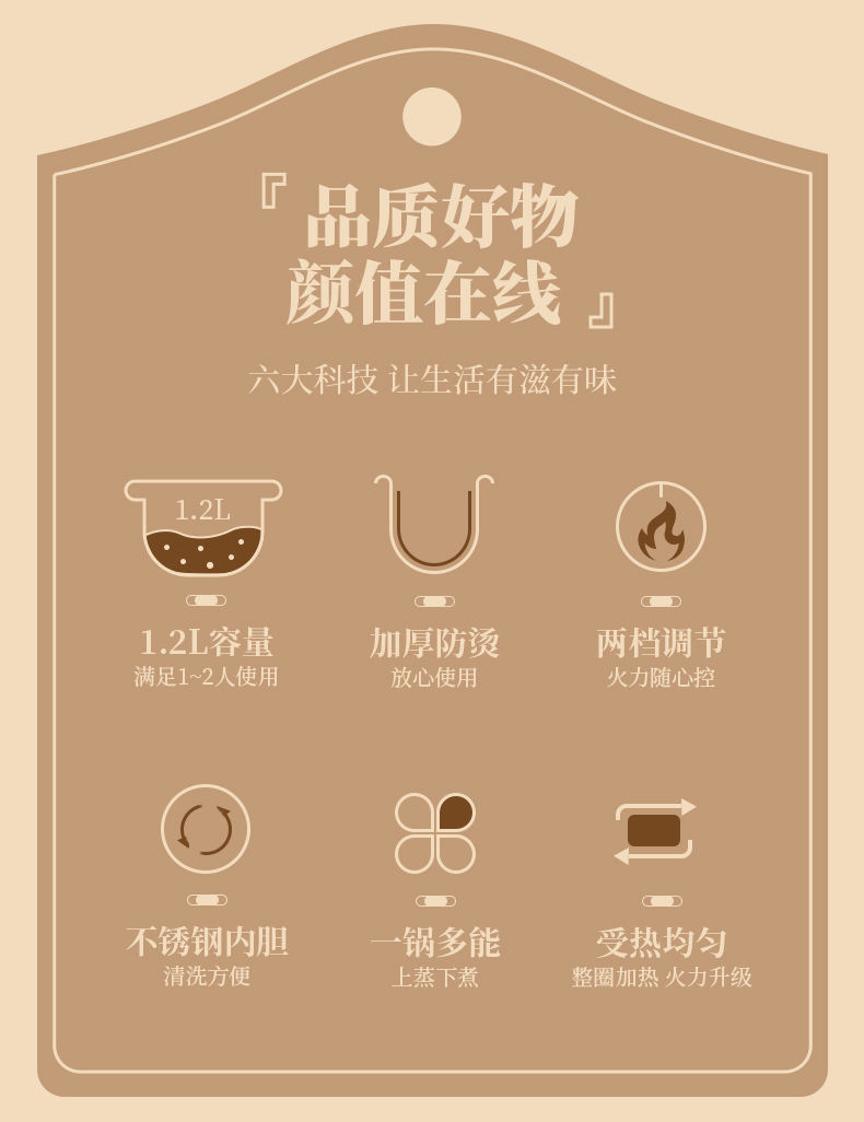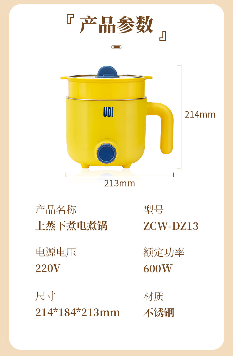 商品名称:UDi上蒸下煮1.2升电煮锅ZCW-DZ13
