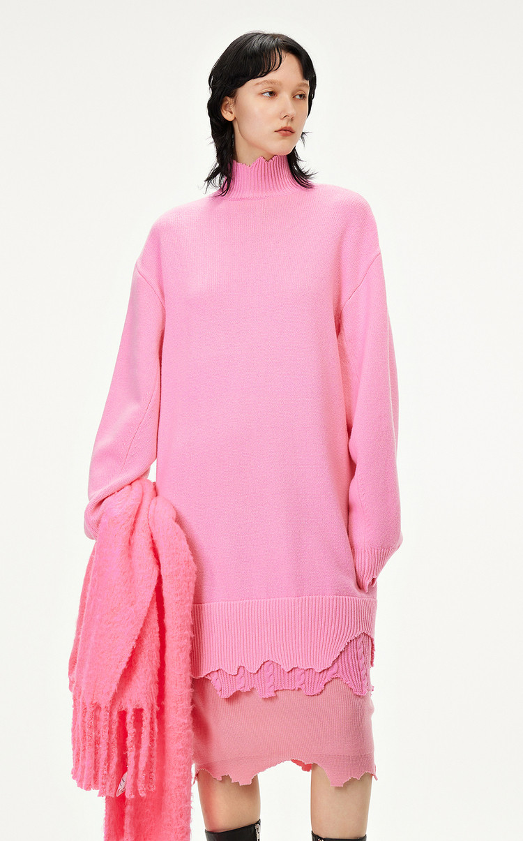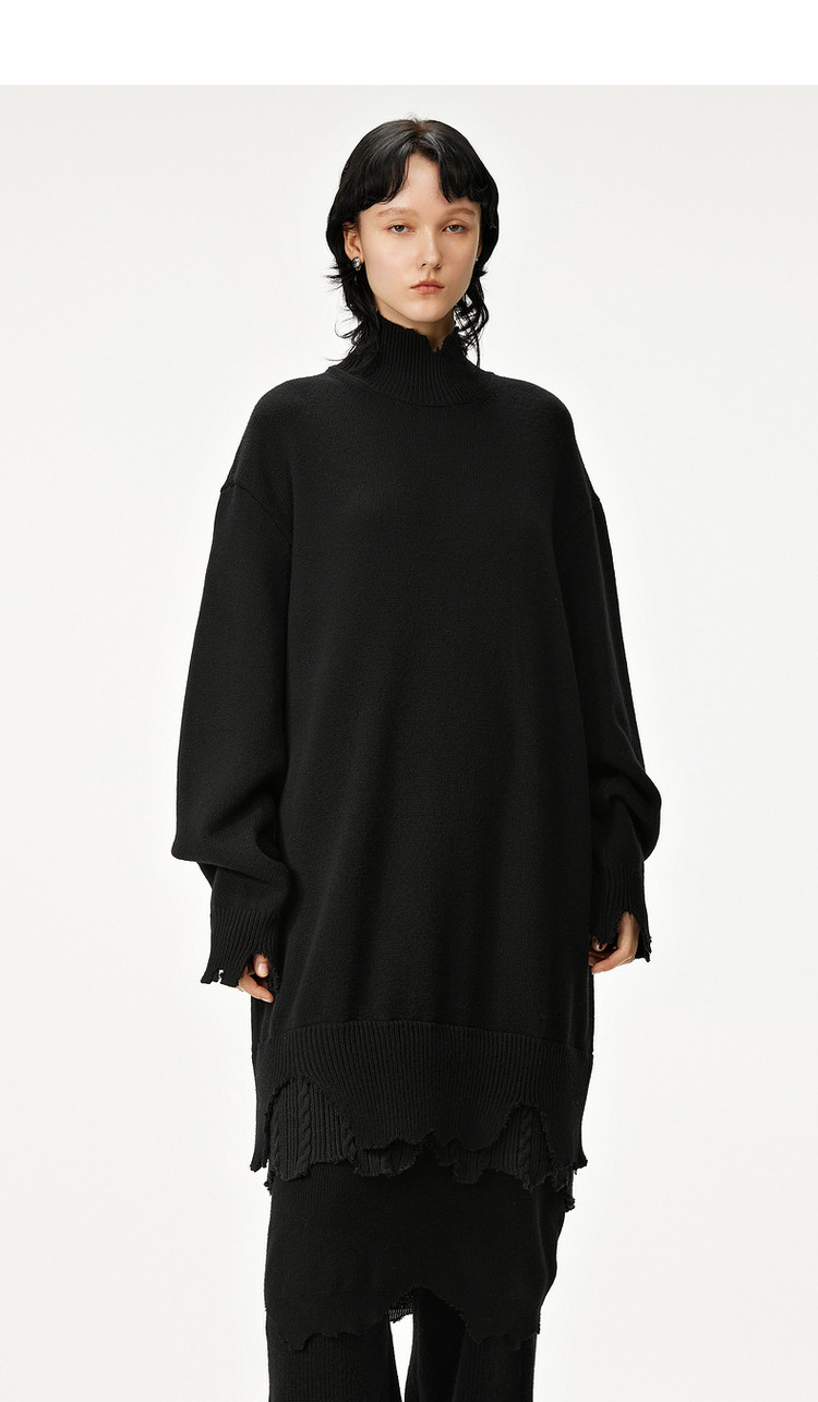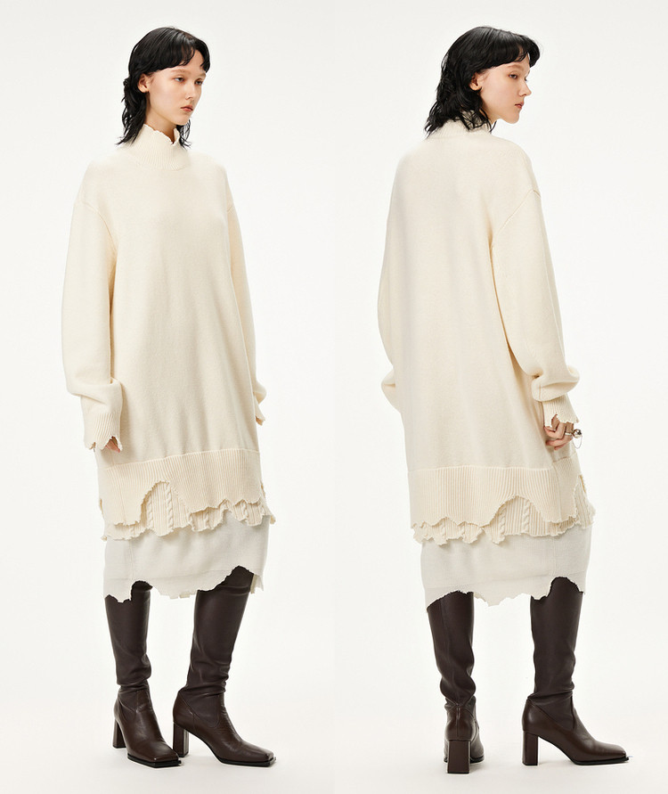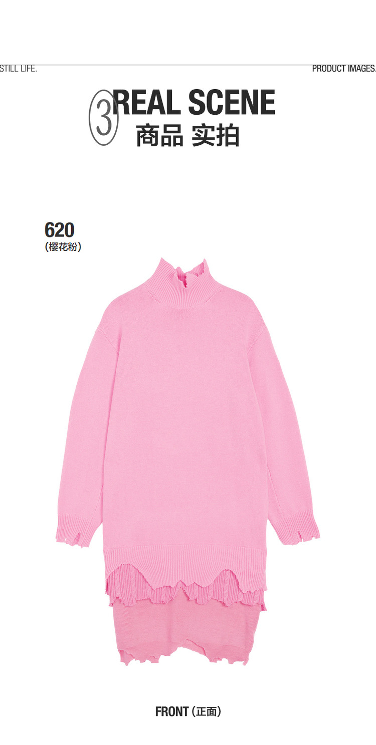 商品名称:冬连衣裙宽松拼接半高领裙装女 730827