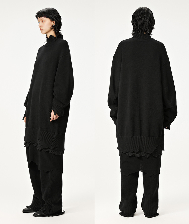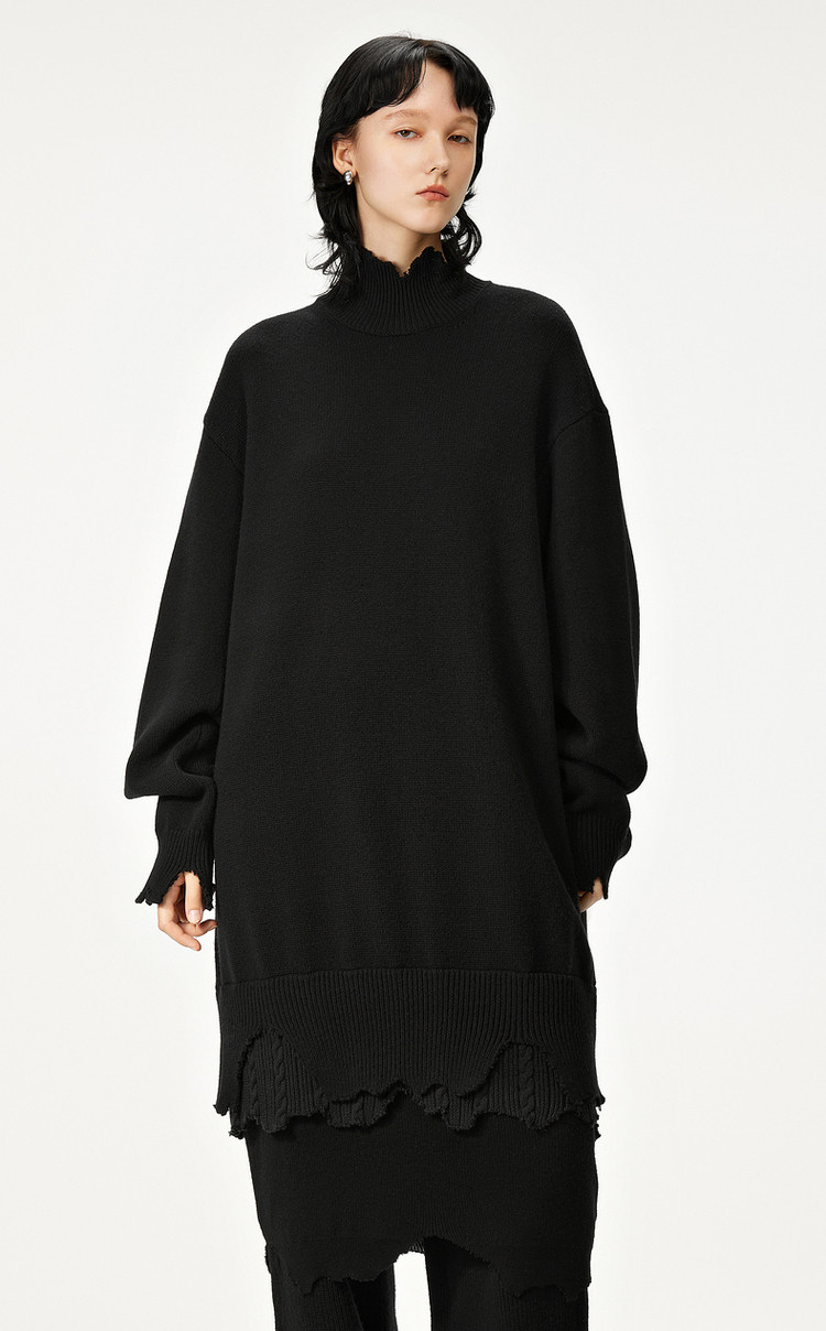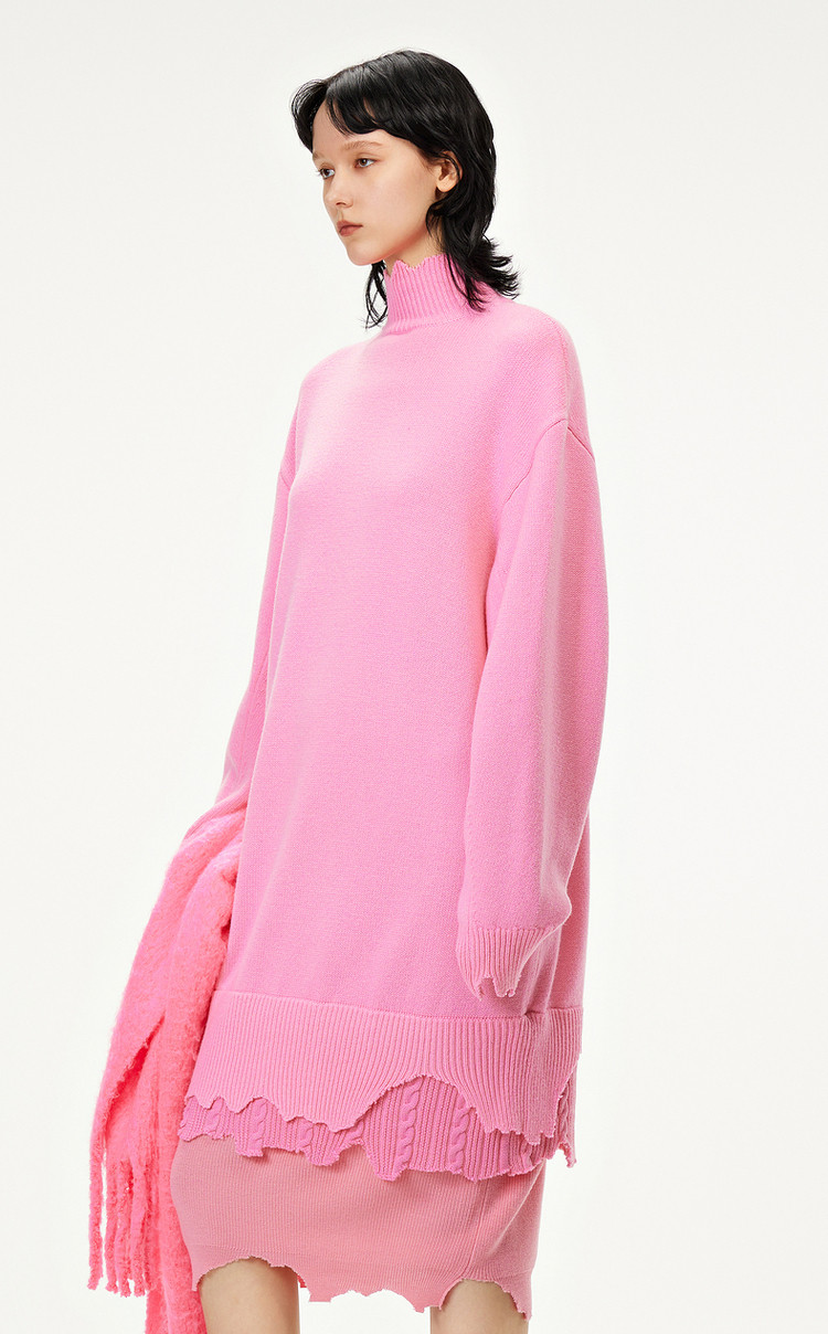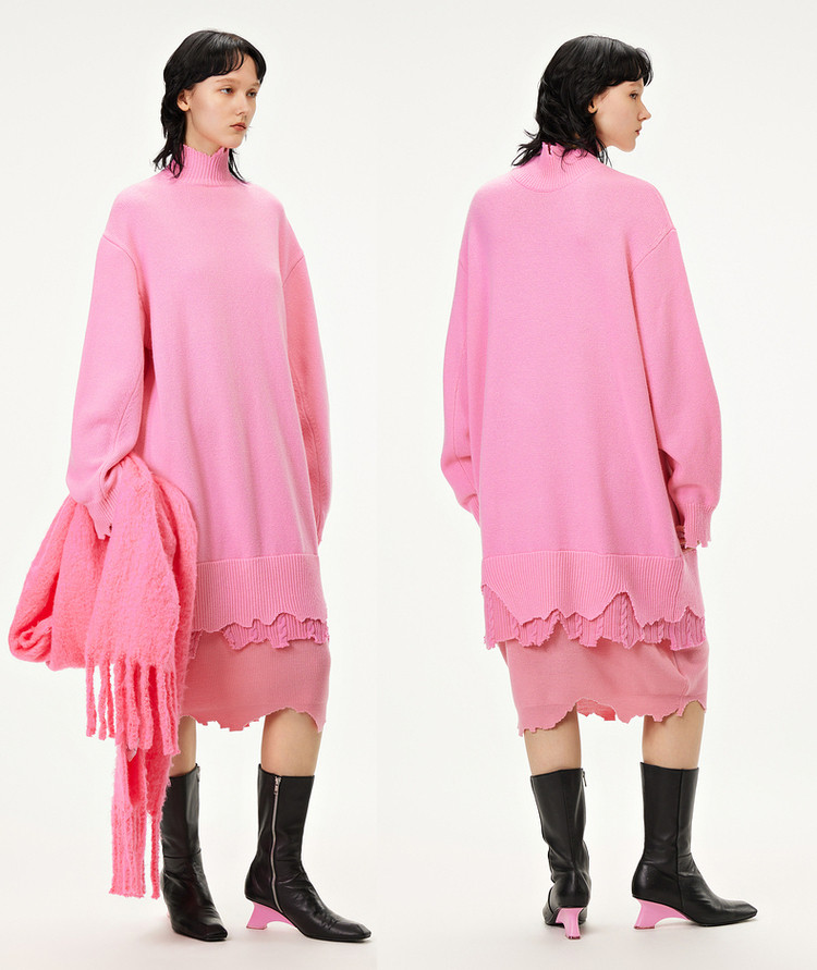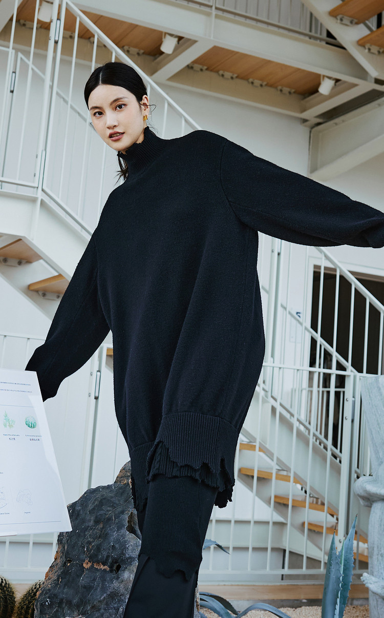 商品名称:冬连衣裙宽松拼接半高领裙装女 730827