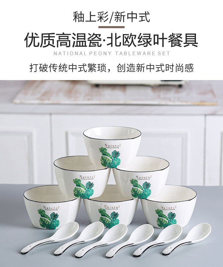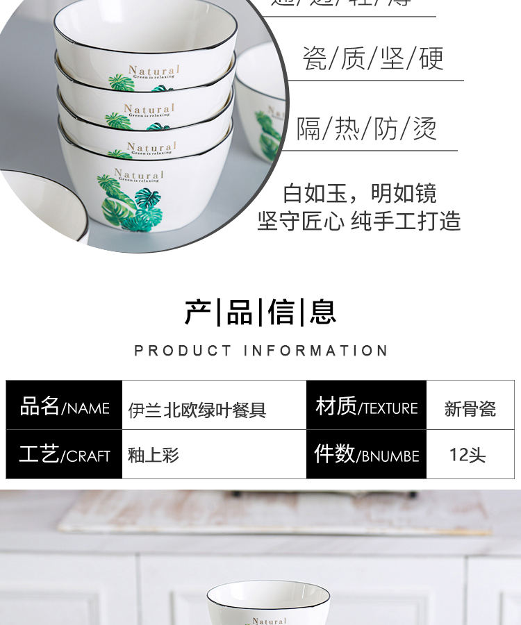 商品名称:YILAN/伊兰北欧绿叶餐具12件套YL-DS1202C
