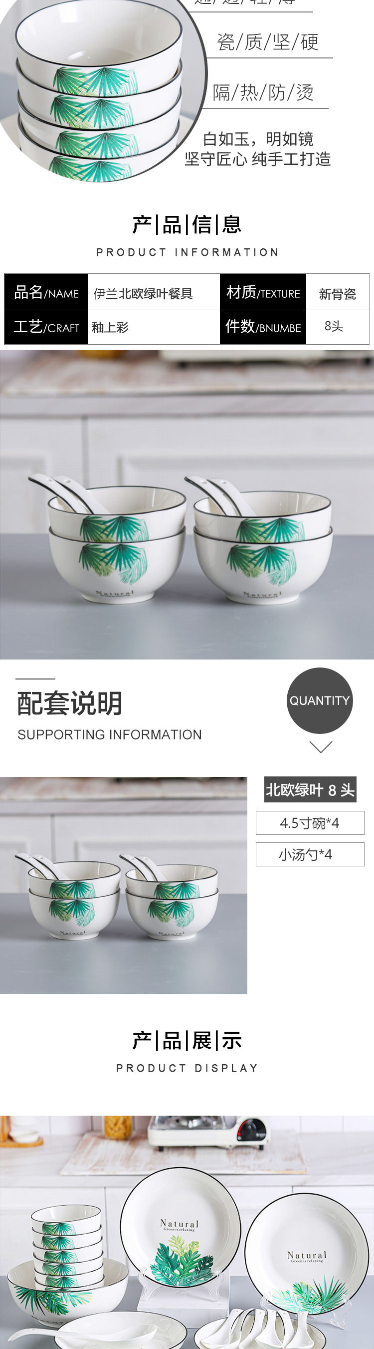 商品名称:YILAN/伊兰北欧绿叶餐具8件套YL-DS802C