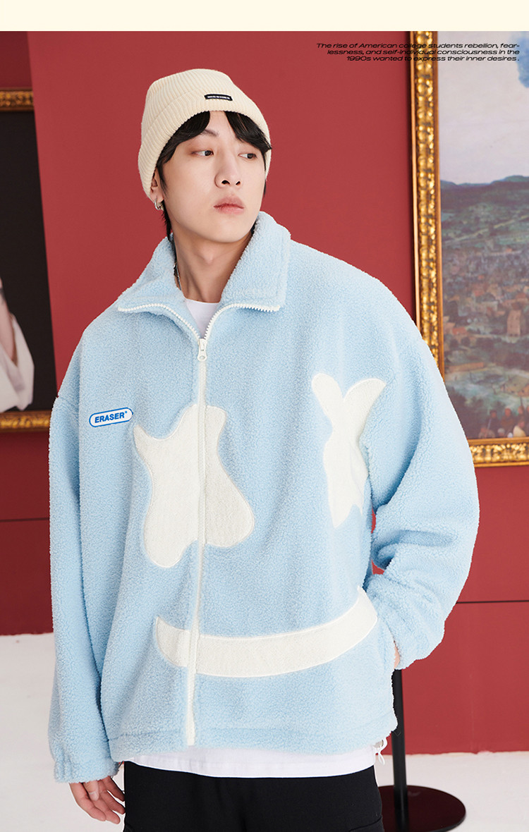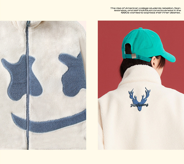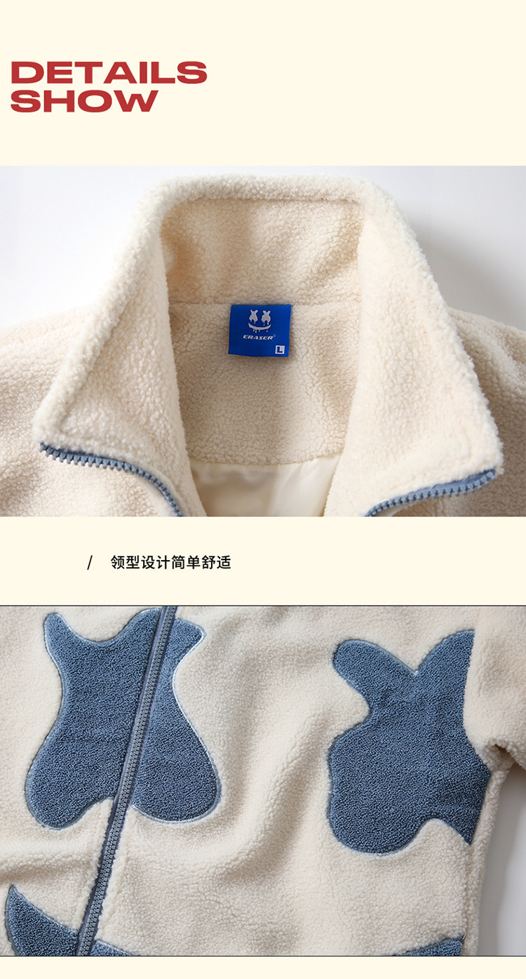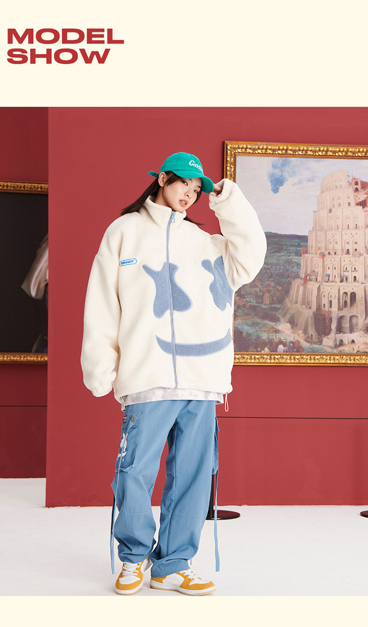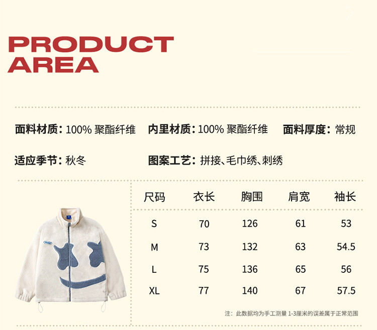 商品名称:笑脸大LOGO仿羊羔毛外套情侣保暖加厚休闲外套男女同款 035223