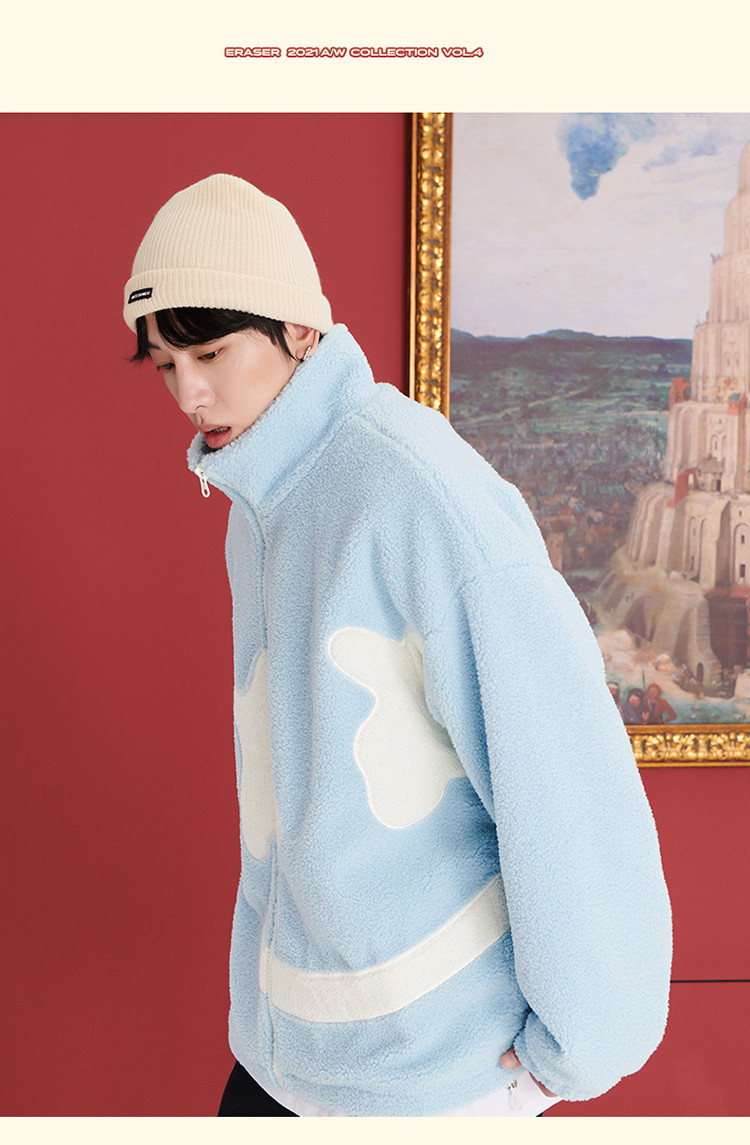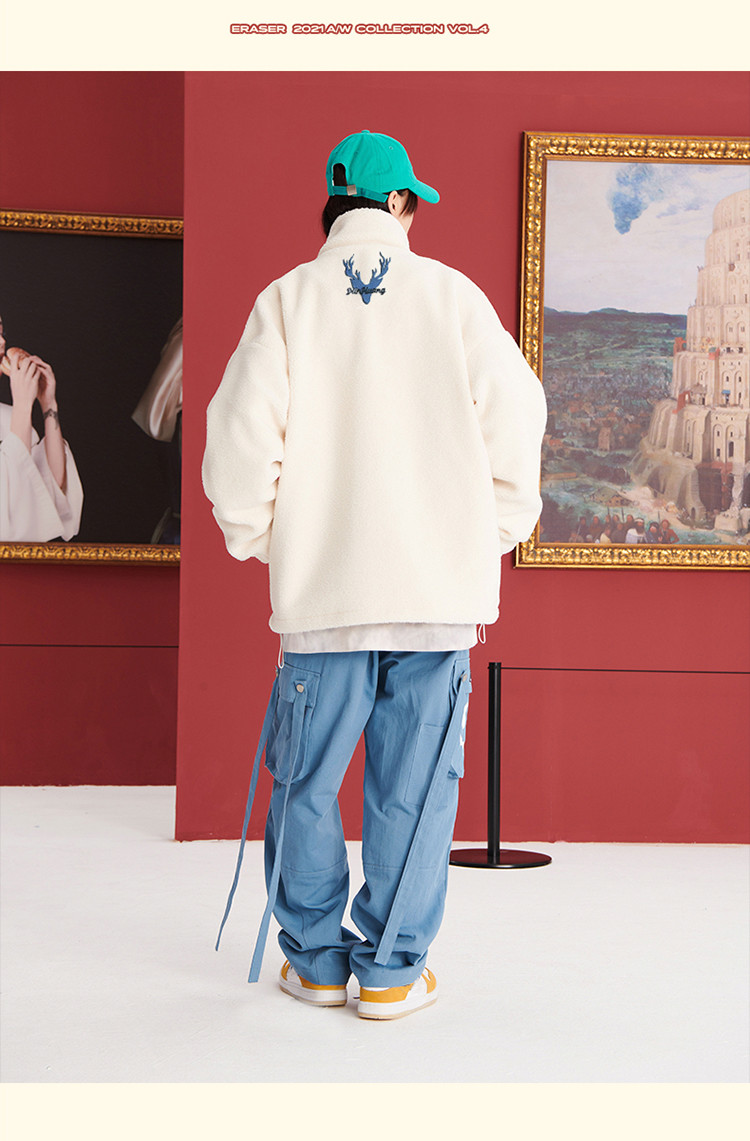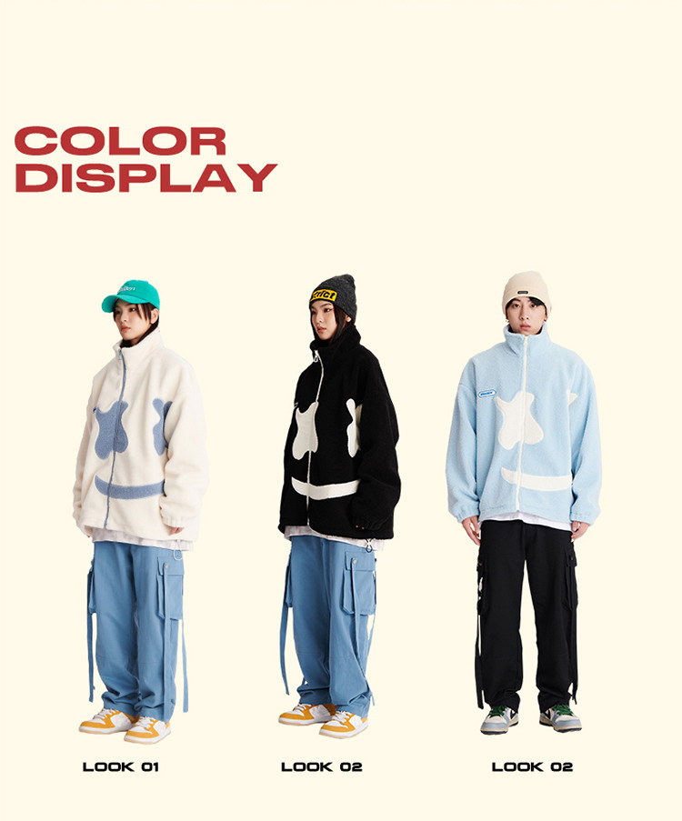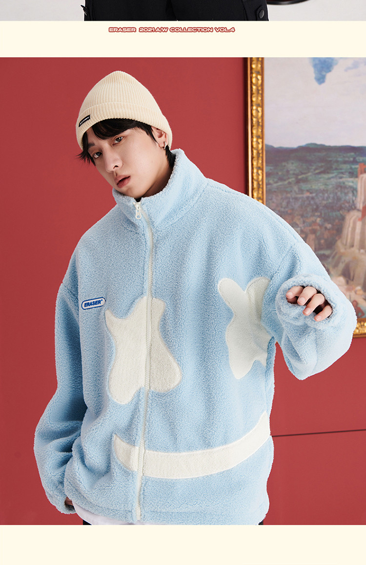 商品名称:笑脸大LOGO仿羊羔毛外套情侣保暖加厚休闲外套男女同款 035223