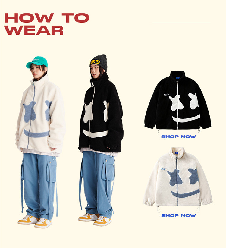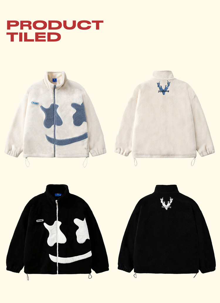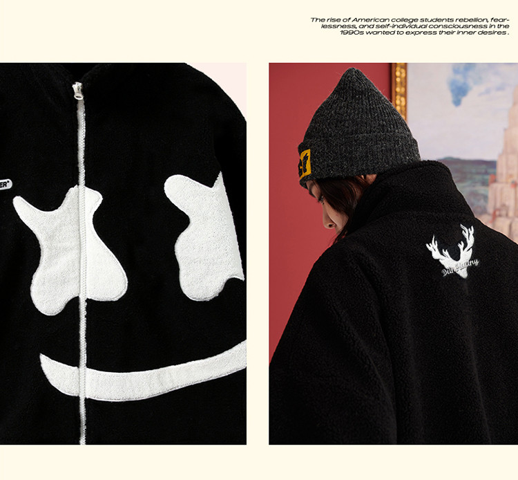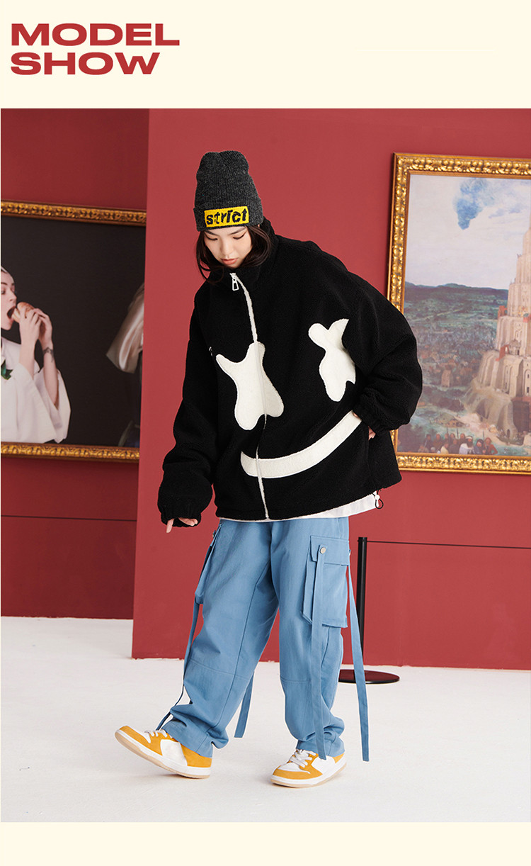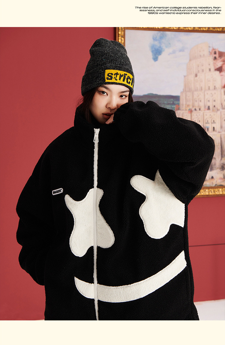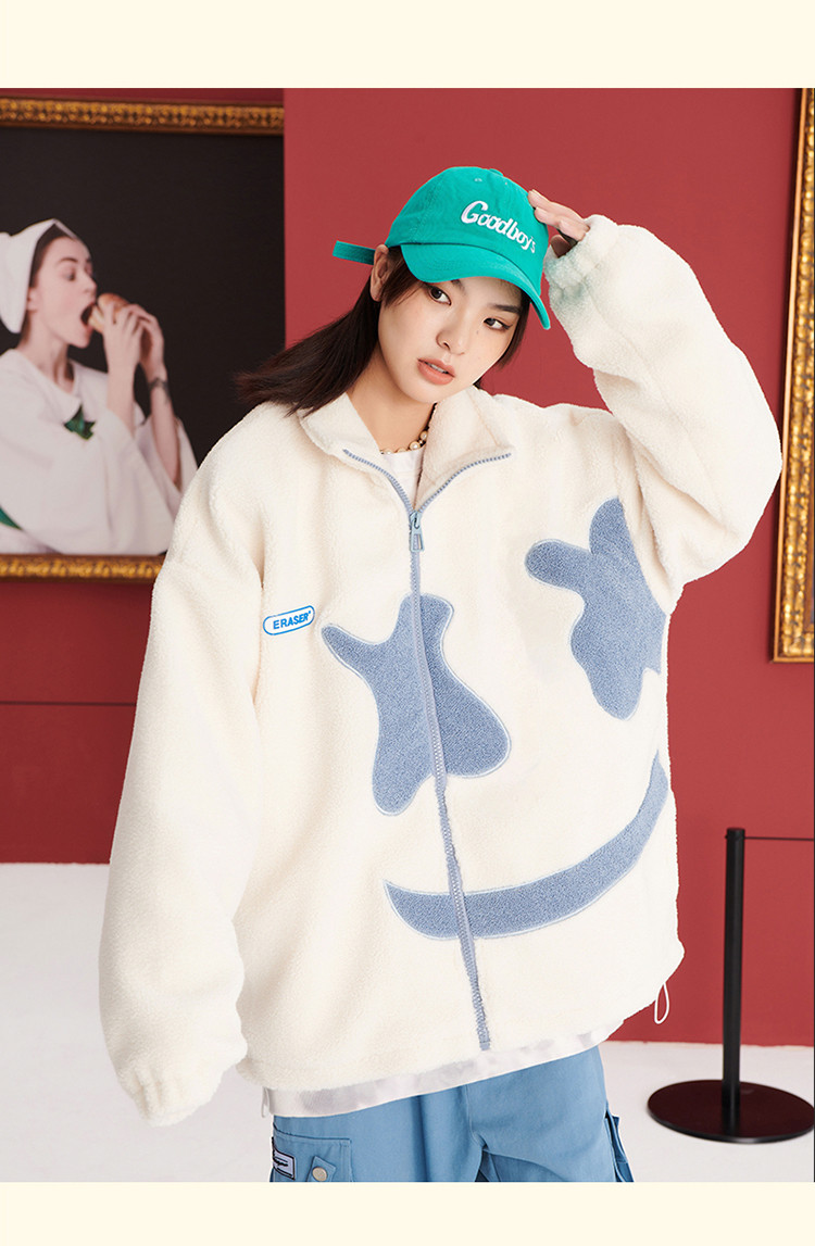 笑脸大LOGO仿羊羔毛外套情侣保暖加厚休闲外套男女同款 035223