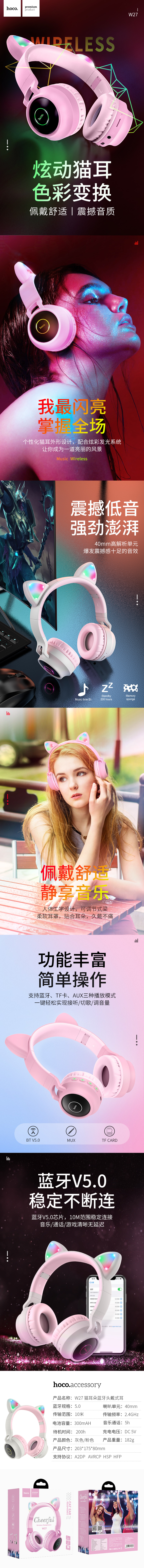 商品名称:hoco./浩酷猫耳朵蓝牙头戴式耳机W27