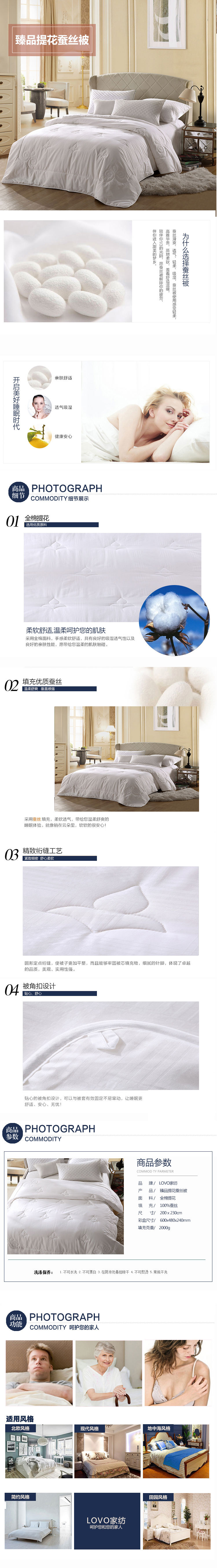 商品名称:LOVO/乐蜗家纺臻品提花蚕丝被200*230cm 2000g