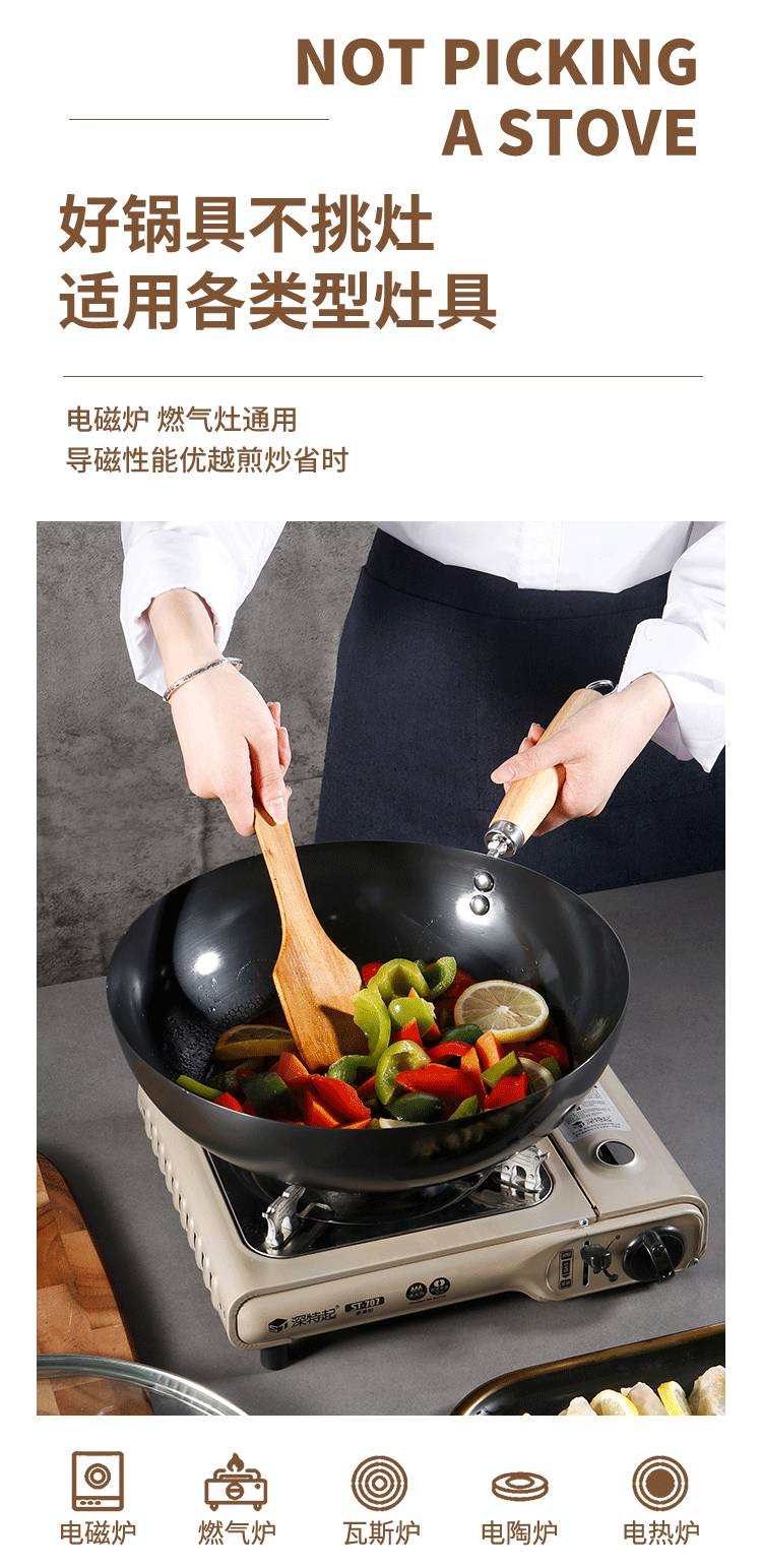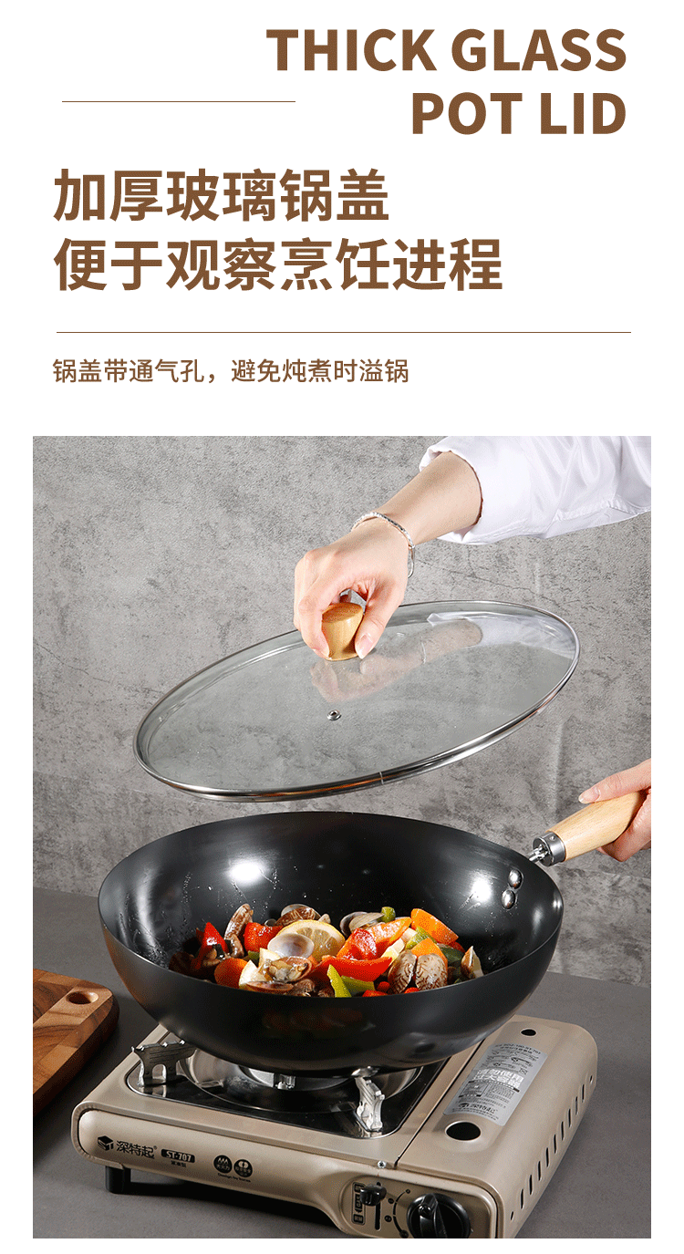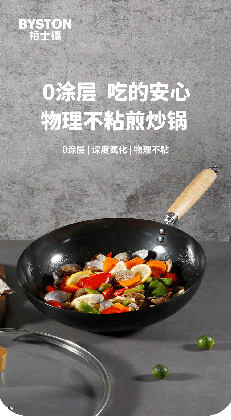 商品名称:BYSTON/栢士德32cm康福斯精铁炒锅带锅盖BST-088