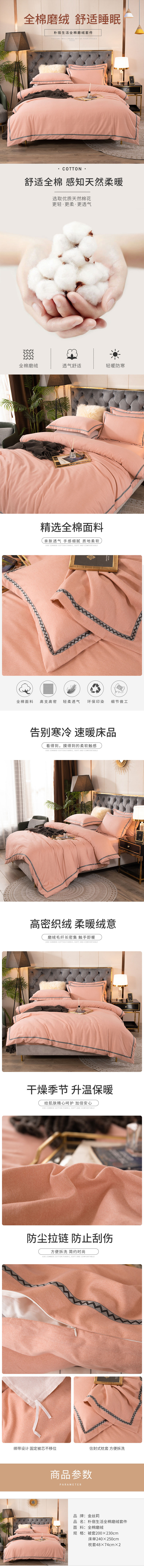 商品名称:KINTHERI/金丝莉朴宿生活全棉磨绒床品四件套-粉色200*230cm