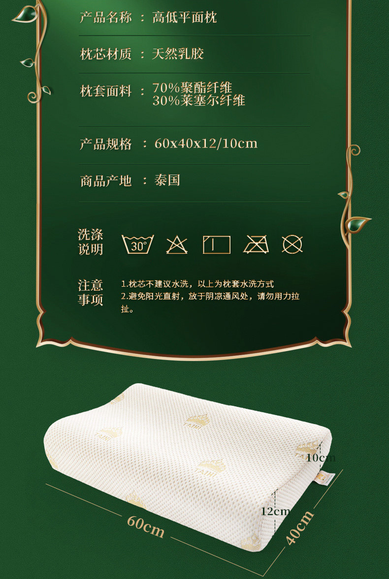 商品名称:TAIHI/泰嗨天然乳胶高低平面枕1只TPA11-01