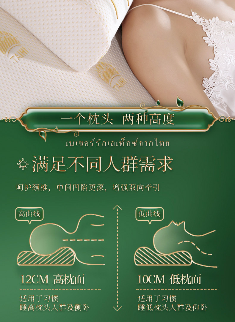 TAIHI/泰嗨天然乳胶高低平面枕1只TPA11-01